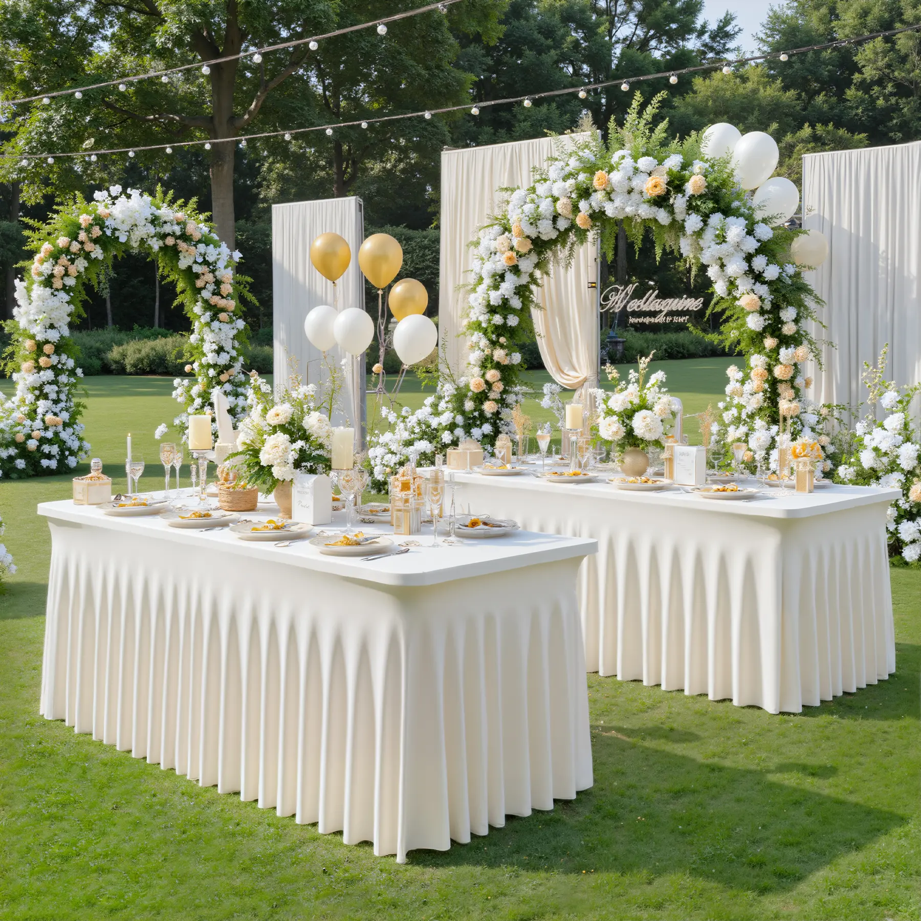 This stretchy banquet table cover is ideal for holiday parties, Christmas events, weddings, and birthday decor. The spandex material ensures a snug fit, making it perfect for dessert table setups. Elevate your event with this versatile tablecloth.