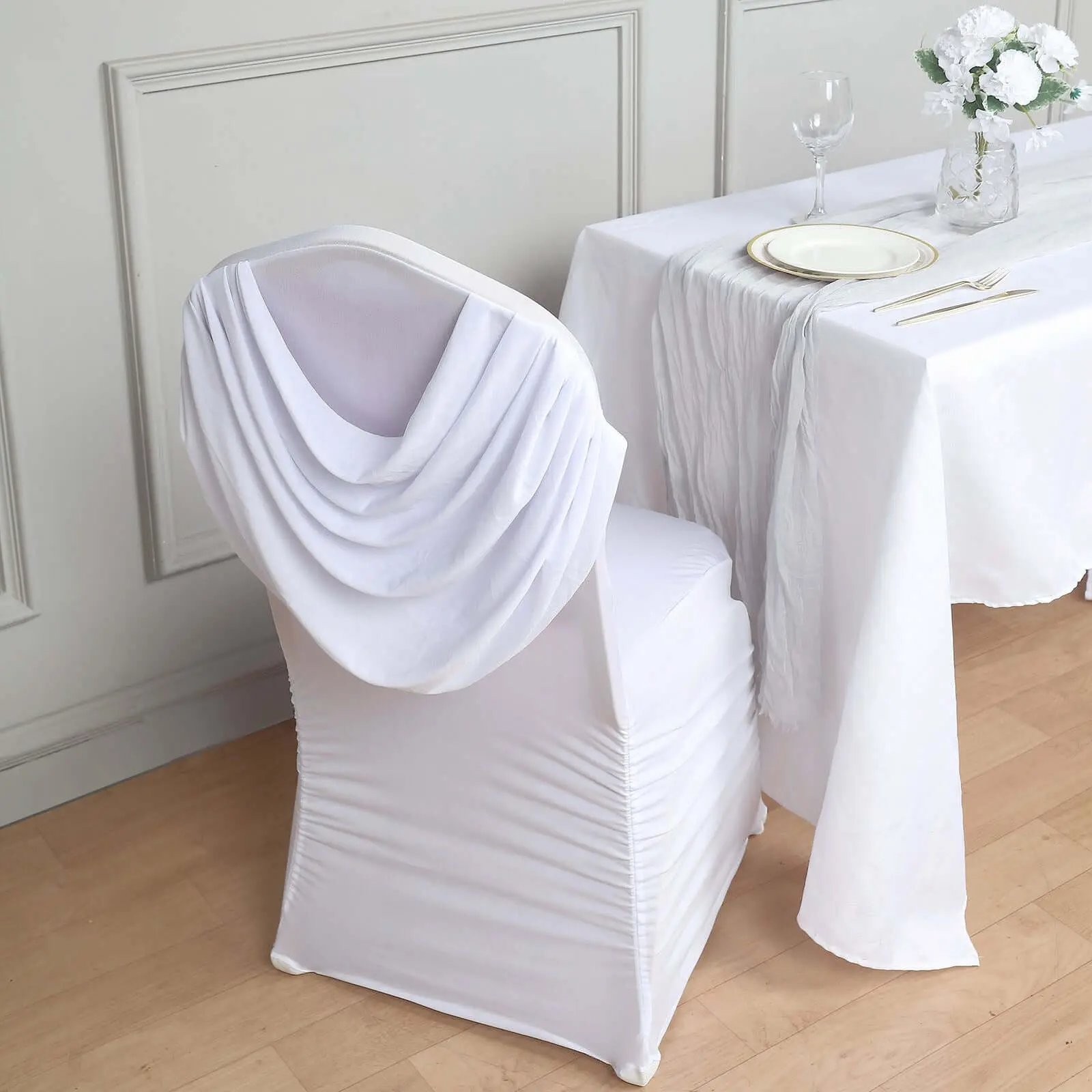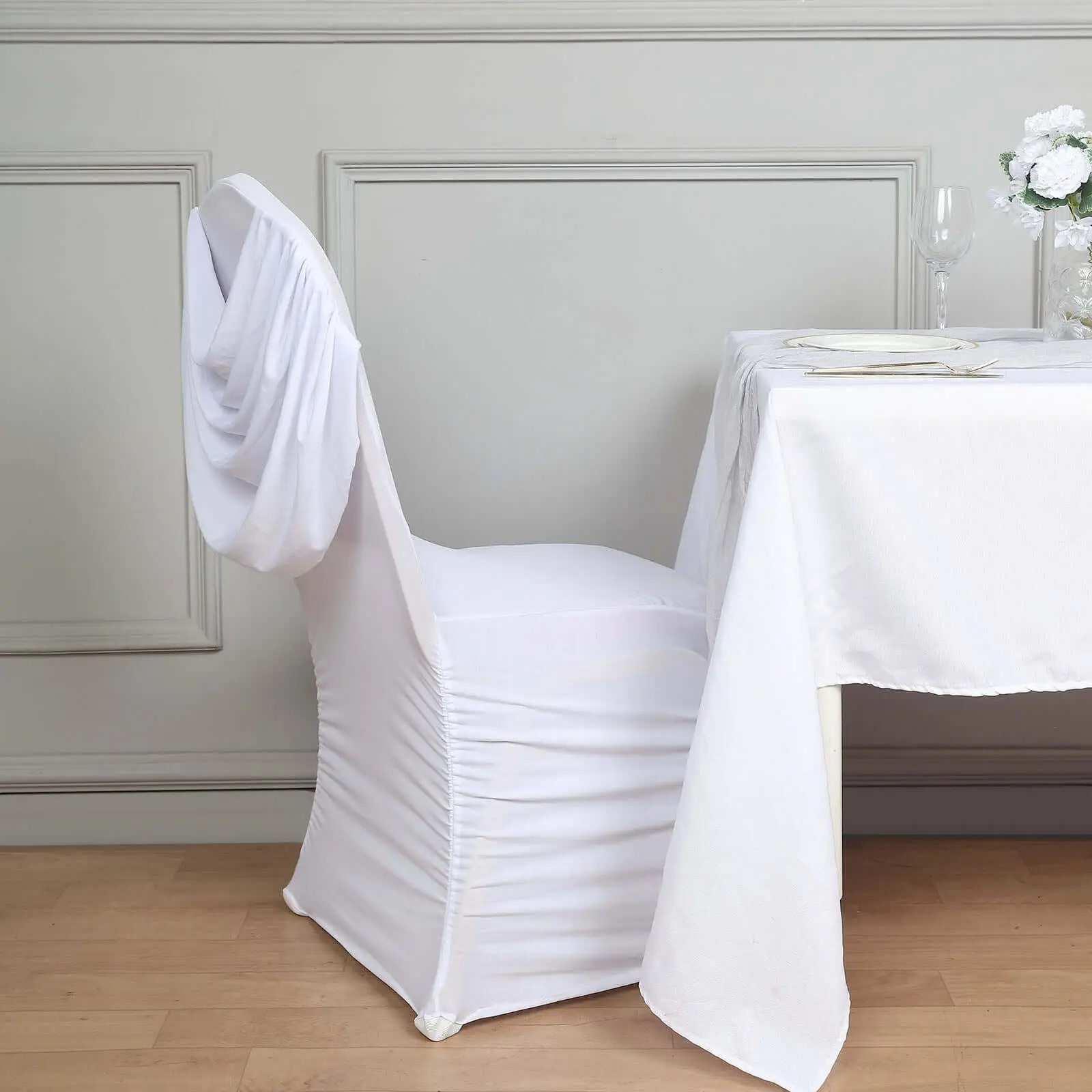 Spandex Fitted Banquet Chair Cover White with Ruched Swag Back and Foot Pockets - Sleek Durable Slip-On Slipcover for Sophisticated Events