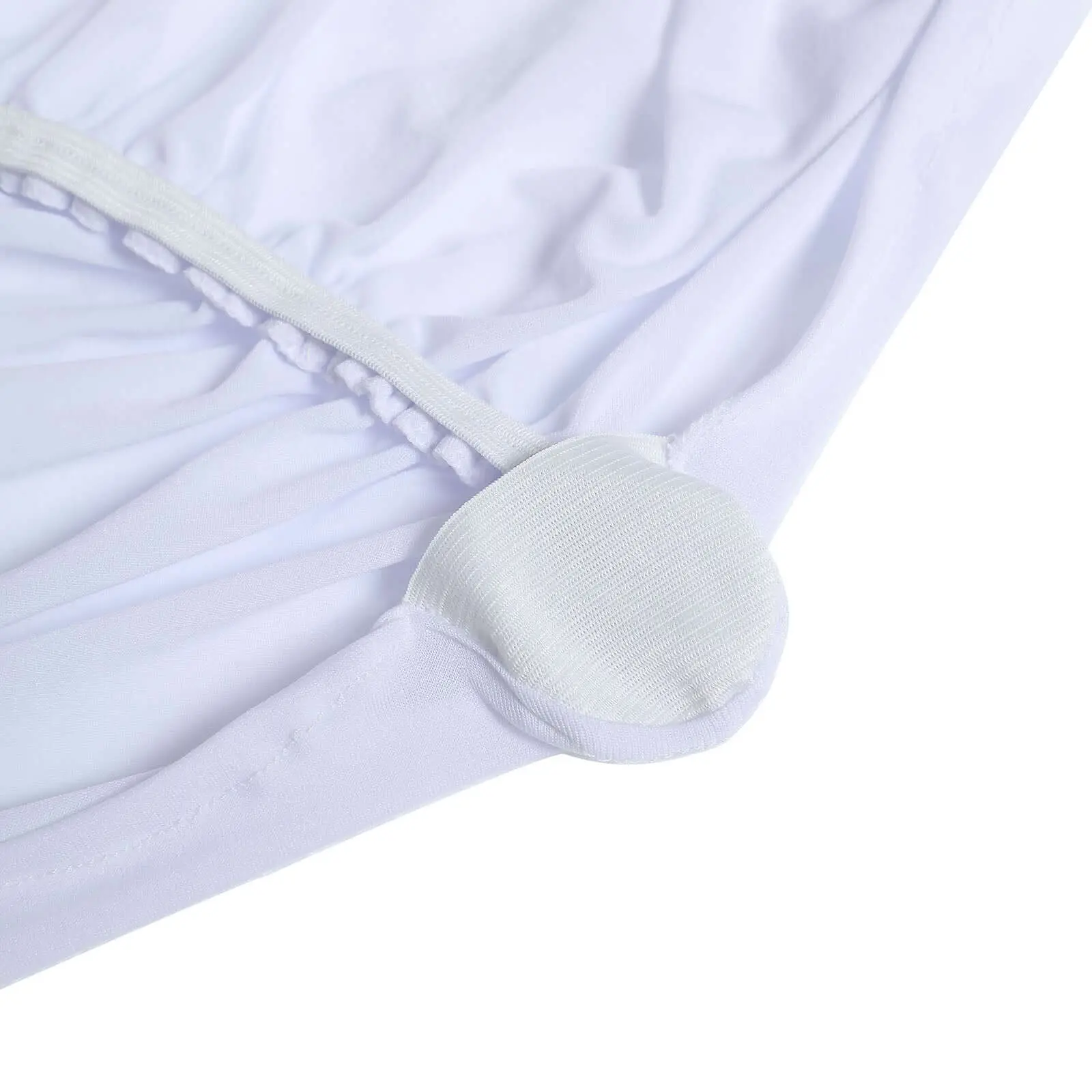 5. Spandex Fitted Banquet Chair Cover White with Ruched Swag Back and Foot Pockets - Sleek Durable Slip-On Slipcover for Sophisticated Events