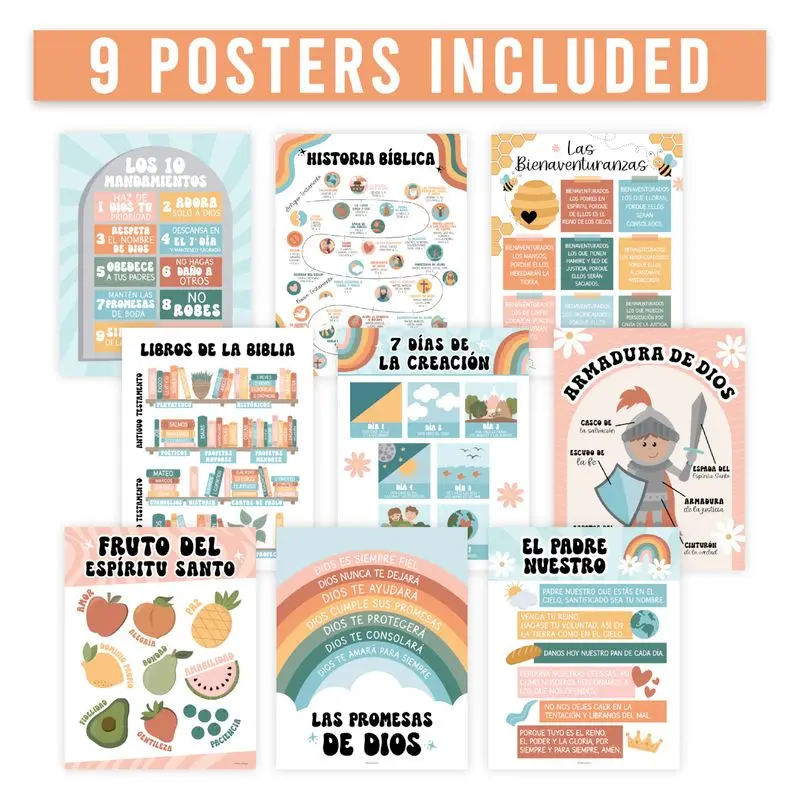 Make Bible learning fun and engaging! These posters inspire kids about God's teachings. They help make learning the Bible unforgettable, fostering a love for God's word. Perfect for Sunday school or classroom use, these posters captivate attention and aid in key Bible teachings absorption.
