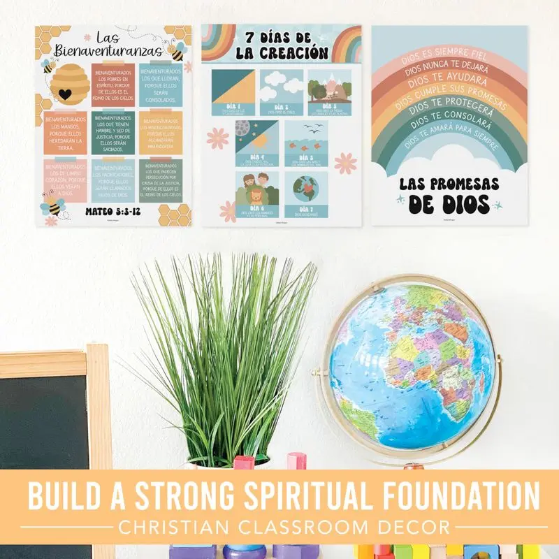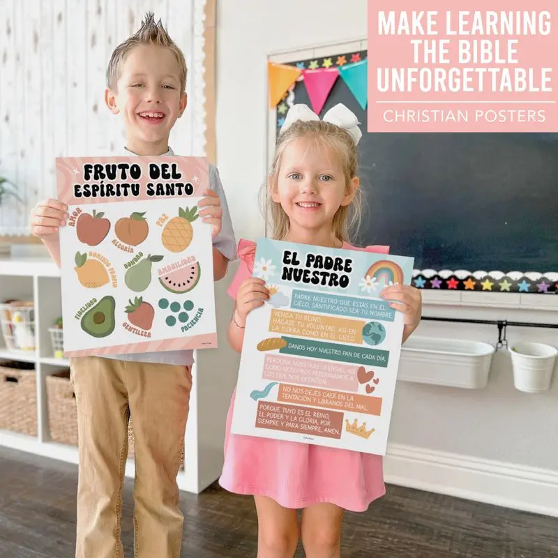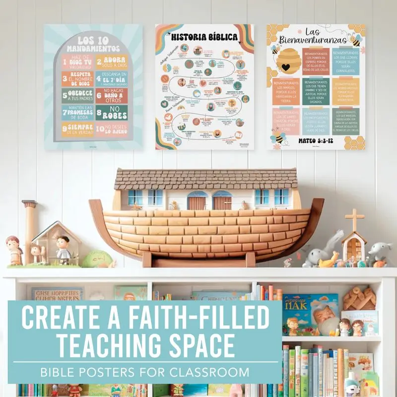 Use these posters for classroom decorations, teacher supplies, or religious wall art. They fit various educational levels from preschool to high school. Enhance your classroom with these must-have posters. Perfect for creating a strong spiritual foundation and educational environment.