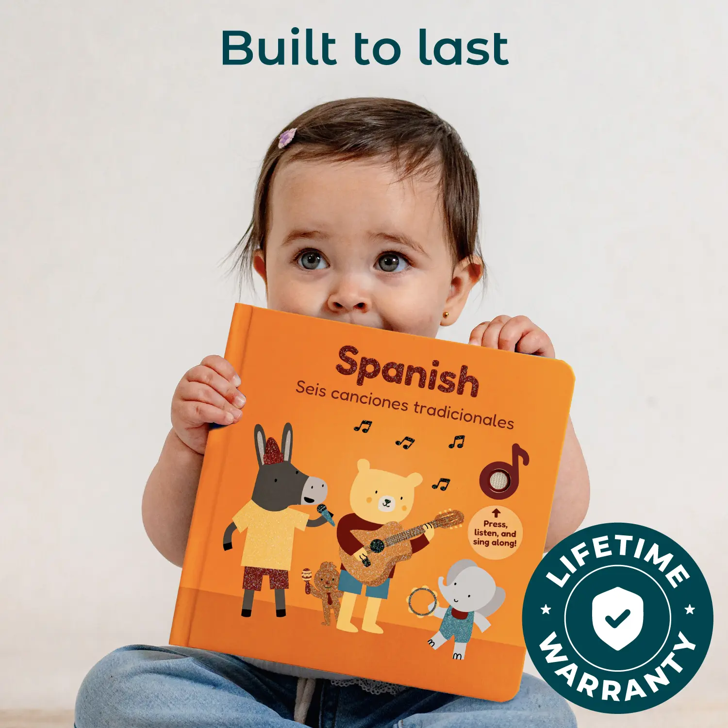 Designed for ages 0-5, this hard cover book is built to withstand endless play sessions, and it’s powered by a rechargeable lithium-ion battery (USB-C cable not included), so you can keep the music going without hunting for replacements. It’s a mom-created, woman-owned gem that’s ideal for bilingual households, preschool prep, baby showers, or any family looking to add a splash of cultural appreciation to their routine.