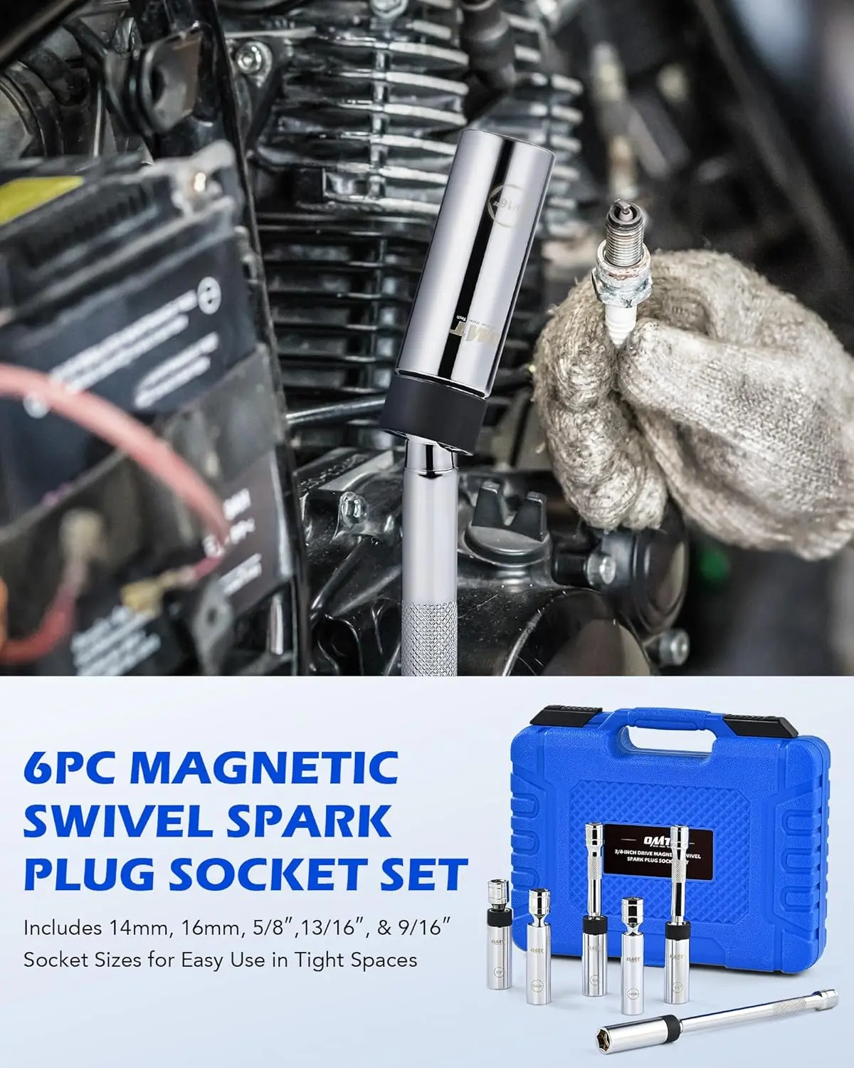 ·Handle Spark Plugs with Ease: Orion Motor Tech's 3/8" drive magnetic spark plug socket set provides the solution for quick & easy removal and installation of spark plugs. This set includes the six sockets: 9/16" x 6", 5/8" x 4", 5/8" x 6", 5/8" x 10", 14mm x 4", 16mm x 4".