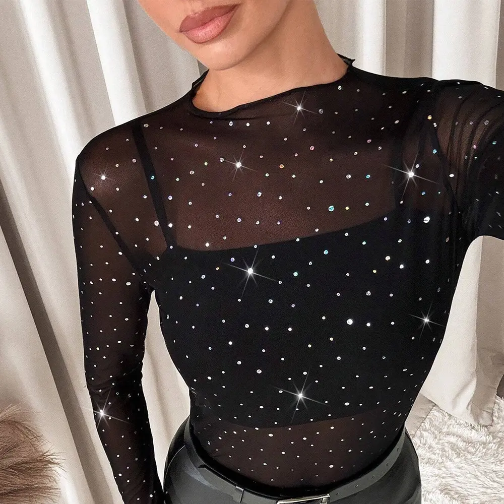 ✨ Versatile Styling: Pair this see-through top with mini skirts and strappy stilettos for concert outfits. It also matches distressed denim jackets and biker shorts. Style it over bandeau bras with high-waisted trousers for office elegance.
