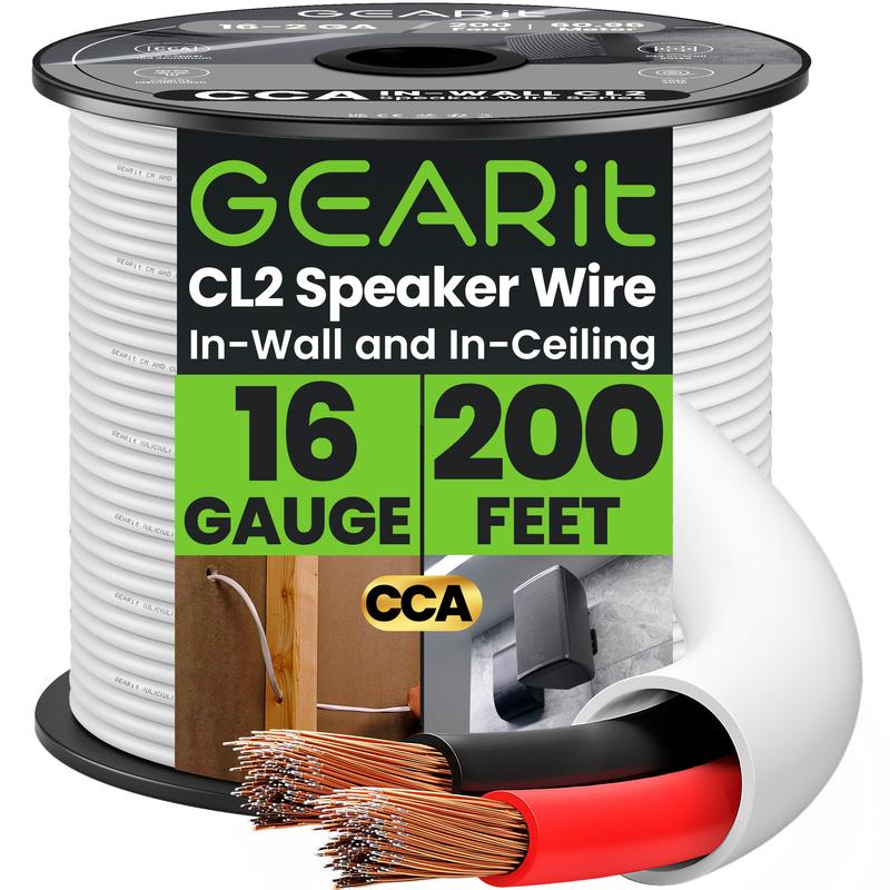 ·FOR IN WALL, IN CEILING SPEAKERS - Our GEARit CL2 speaker wire cable comes in 100ft, 200ft lengths and white colored trailer wire. Search for GEARit 16 AWG Speaker Cables to find all our 16 ga speaker wires. All GEARit indoor in wall speaker copper wires come with a limited lifetime warranty.