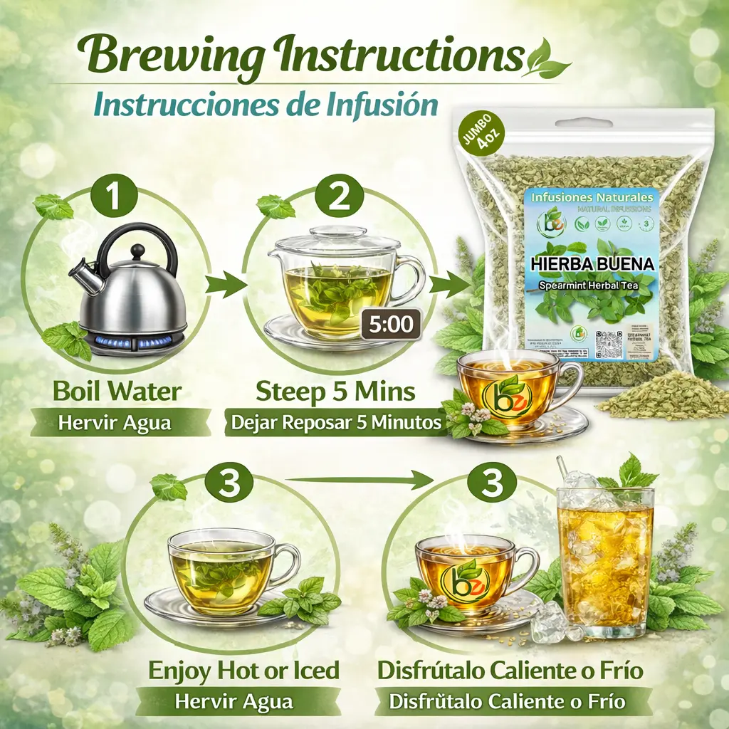 Hierba Buena by BexpertsUSA brings you this herbal tea. Experience the pure essence of dried Mentha Spicata leaves. Each sip offers a delightful herbal experience without compromising on health or taste.