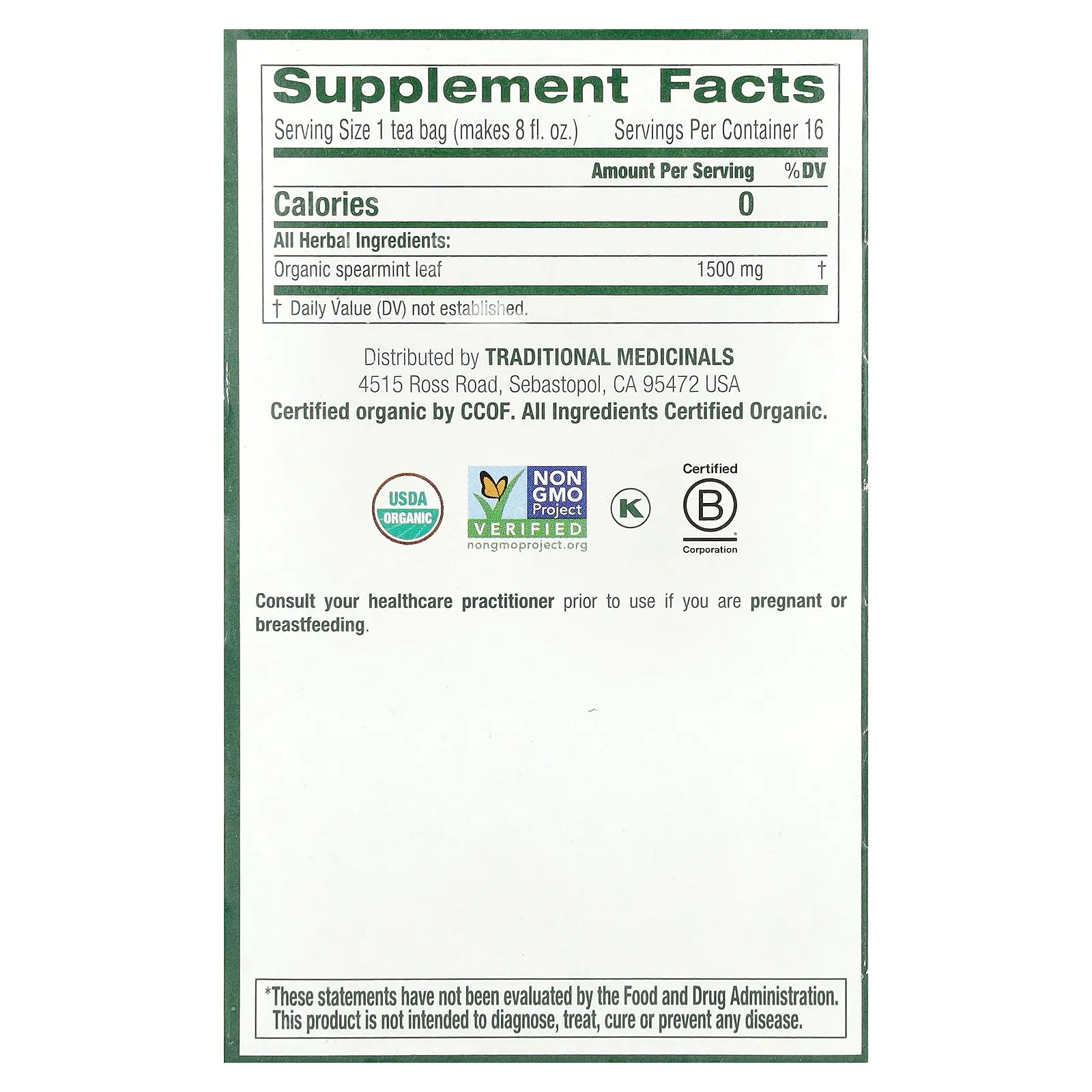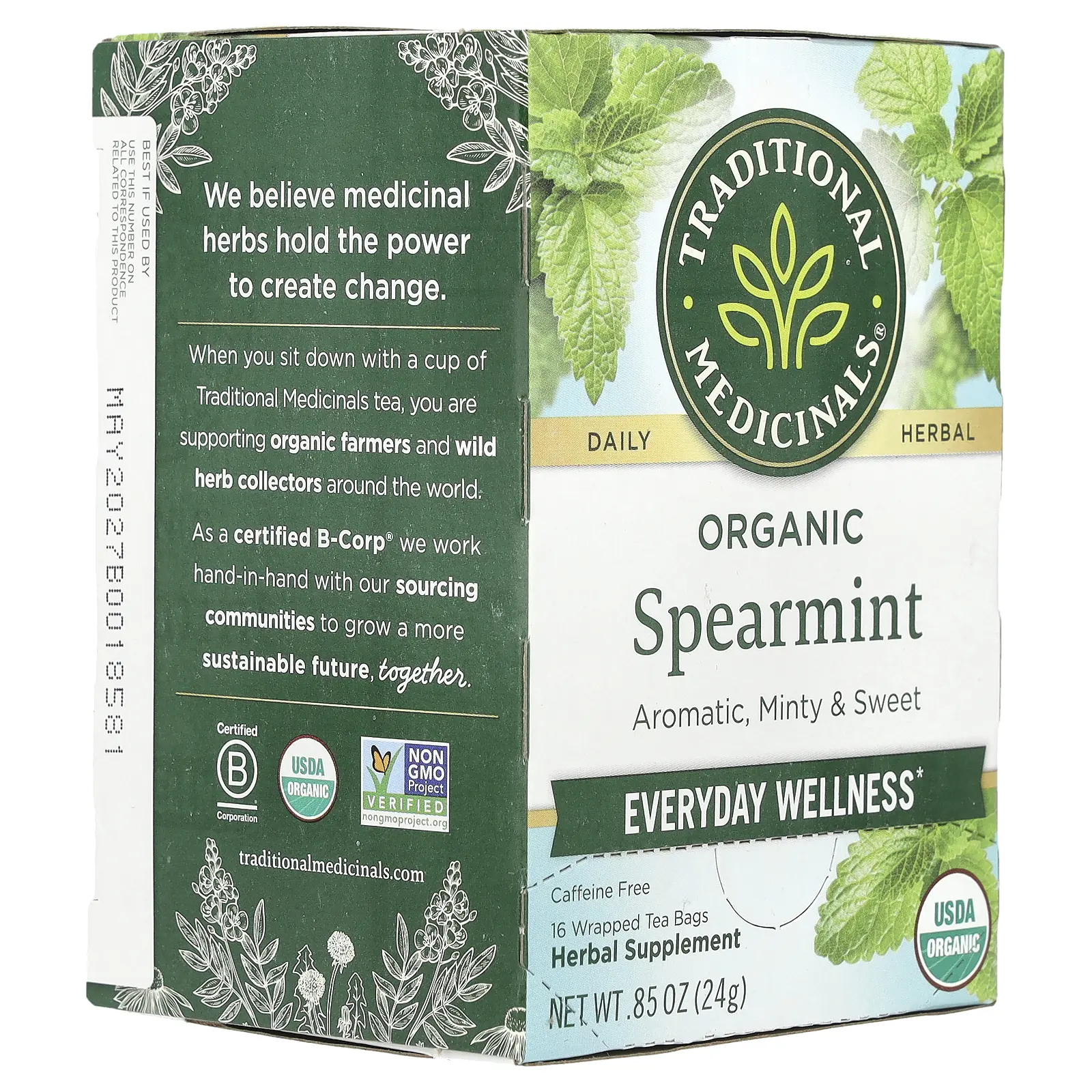 5. Traditional Medicinals Organic Spearmint, Caffeine Free, 16 Wrapped Tea Bags, 0.85 oz (24 g)