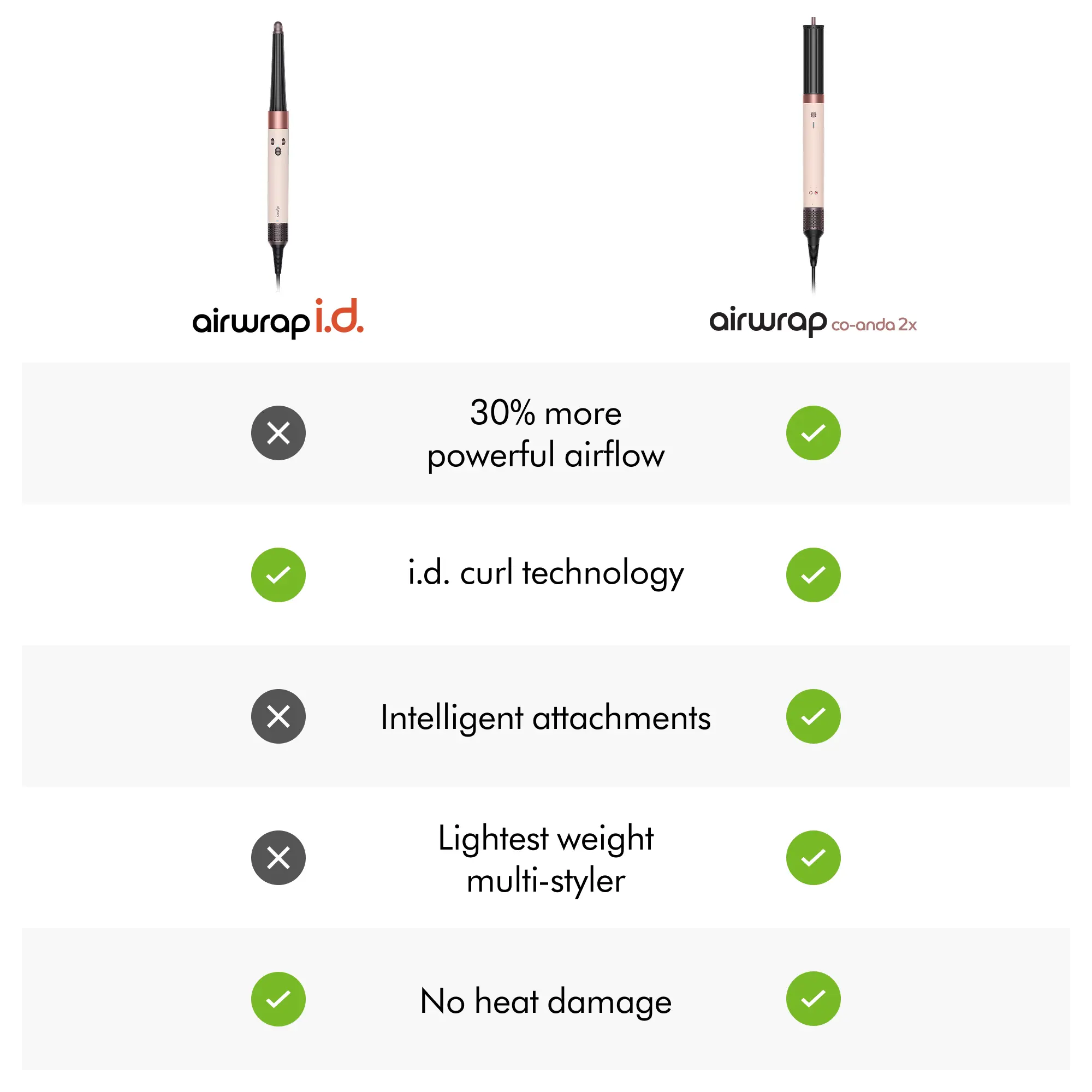 ·Curl:Use the Fast dryer and Anti-snag loop brush to take hair to 80% dry and smooth before styling. Use the Conical barrel for a defined curl. Power on your Dyson Airwrap i.d.™ and slide thumb up on power button to begin i.d. curl sequence.