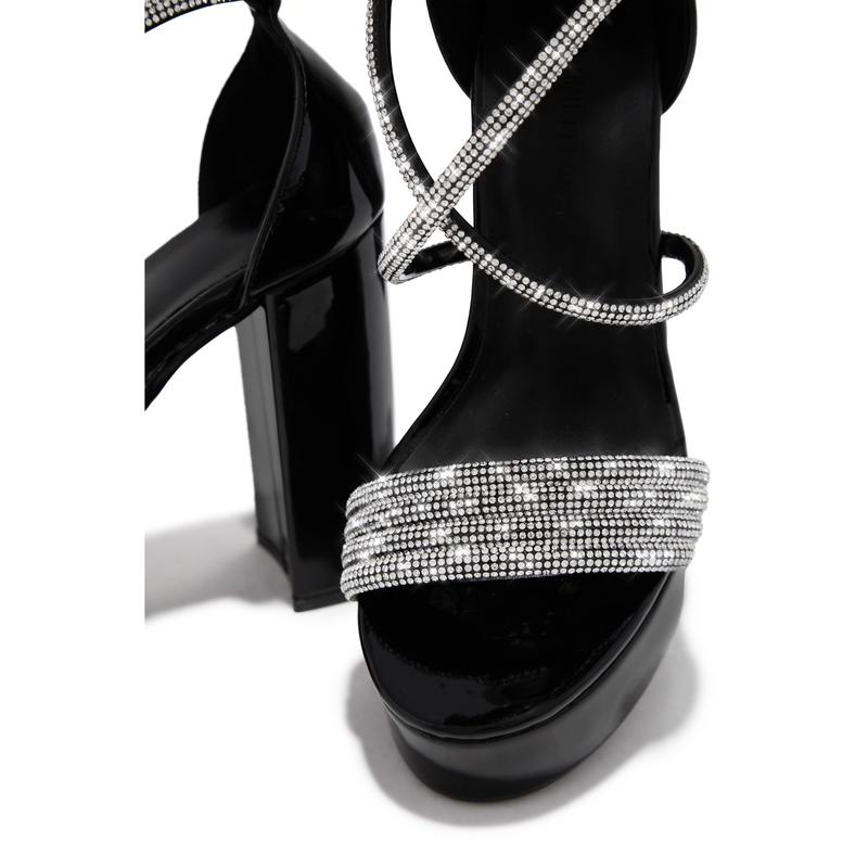 Special Nights Embellished Platform Block Heels - Black