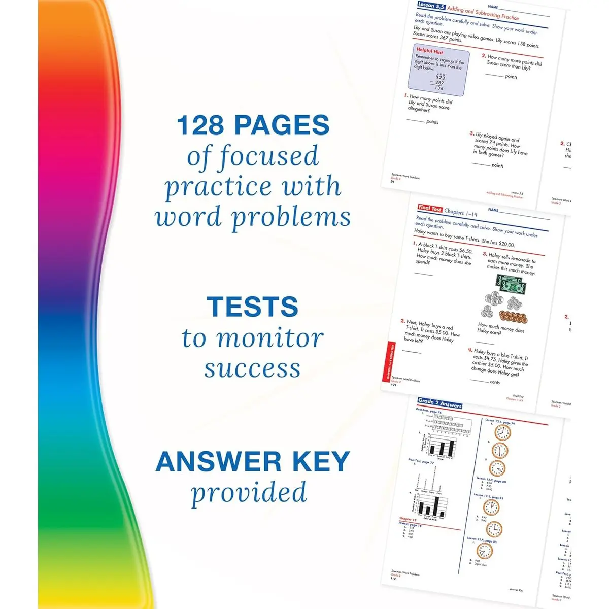 ·Testing progress along the way. Pretests, posttests, a mid-test, final test, and an answer key are included in the Spectrum math grade 2 workbook to help track your child’s progress along the way before moving on to new and exciting math lessons.