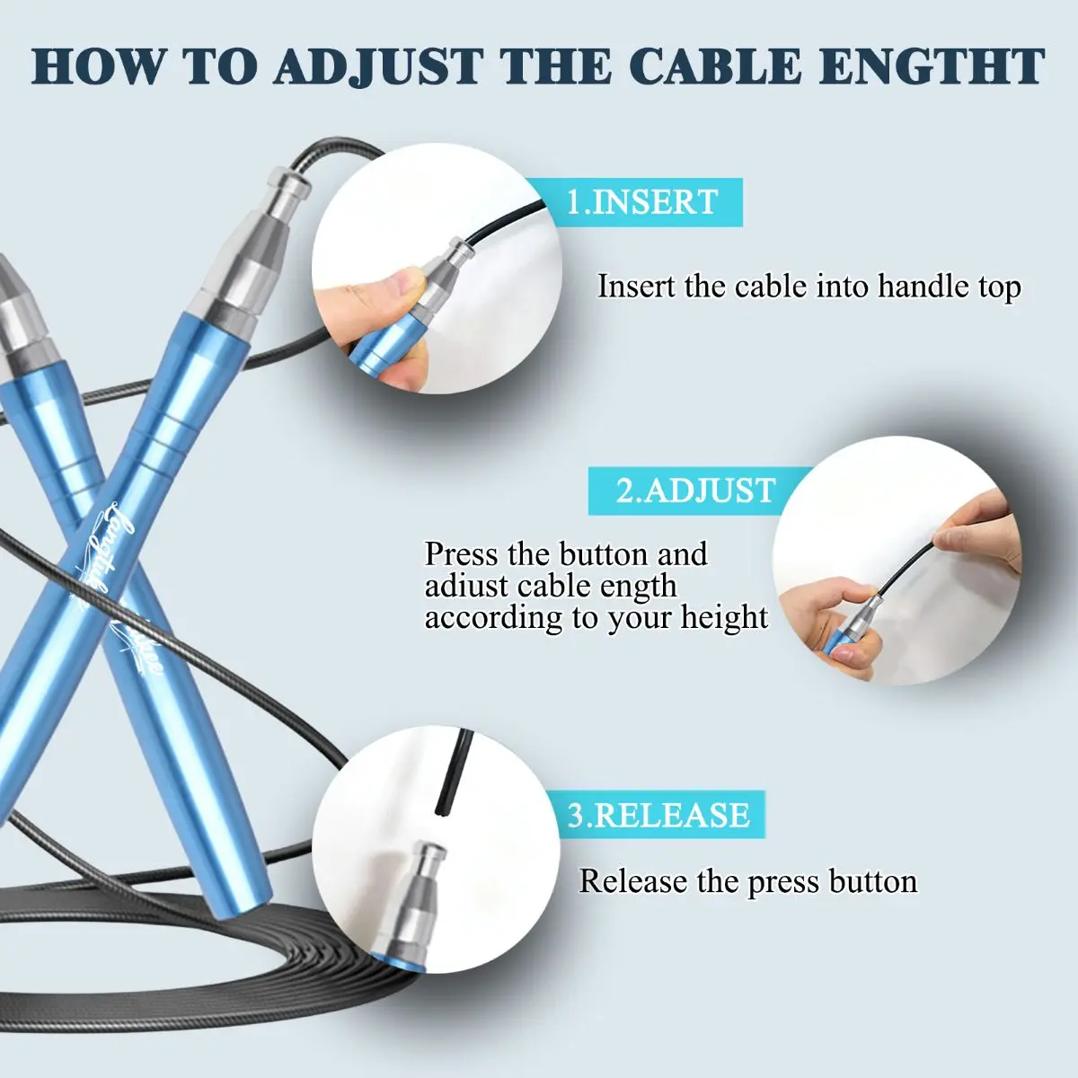 Jump Rope Tangle-Free Rapid Speed Cable with Ball Bearings for Women Men Kids Adjustable Steel Lightweight Non-Slip Handles Home Gym Exercise Fitness Workout Equipment Slim Body