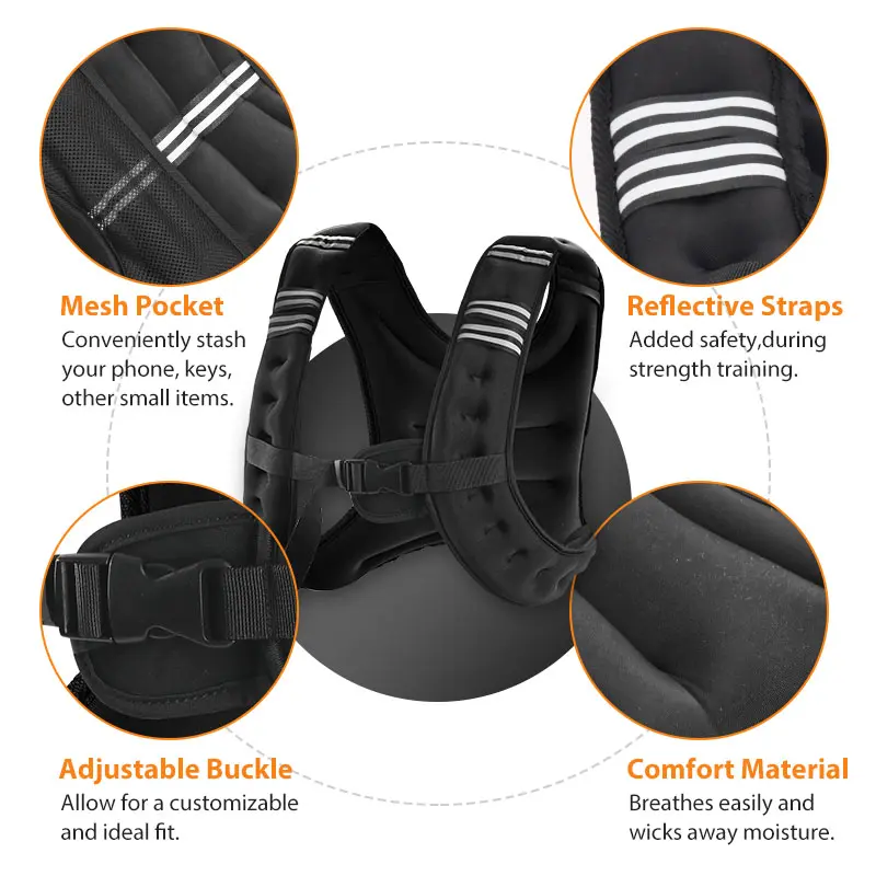 Upgrade your workout with this 12lbs weighted vest. Perfect for walking, training, and running, it features iron pellet filling for balanced resistance. Ideal for glute workouts and fitness belts, this vest enhances workout intensity. No phone pouch included.