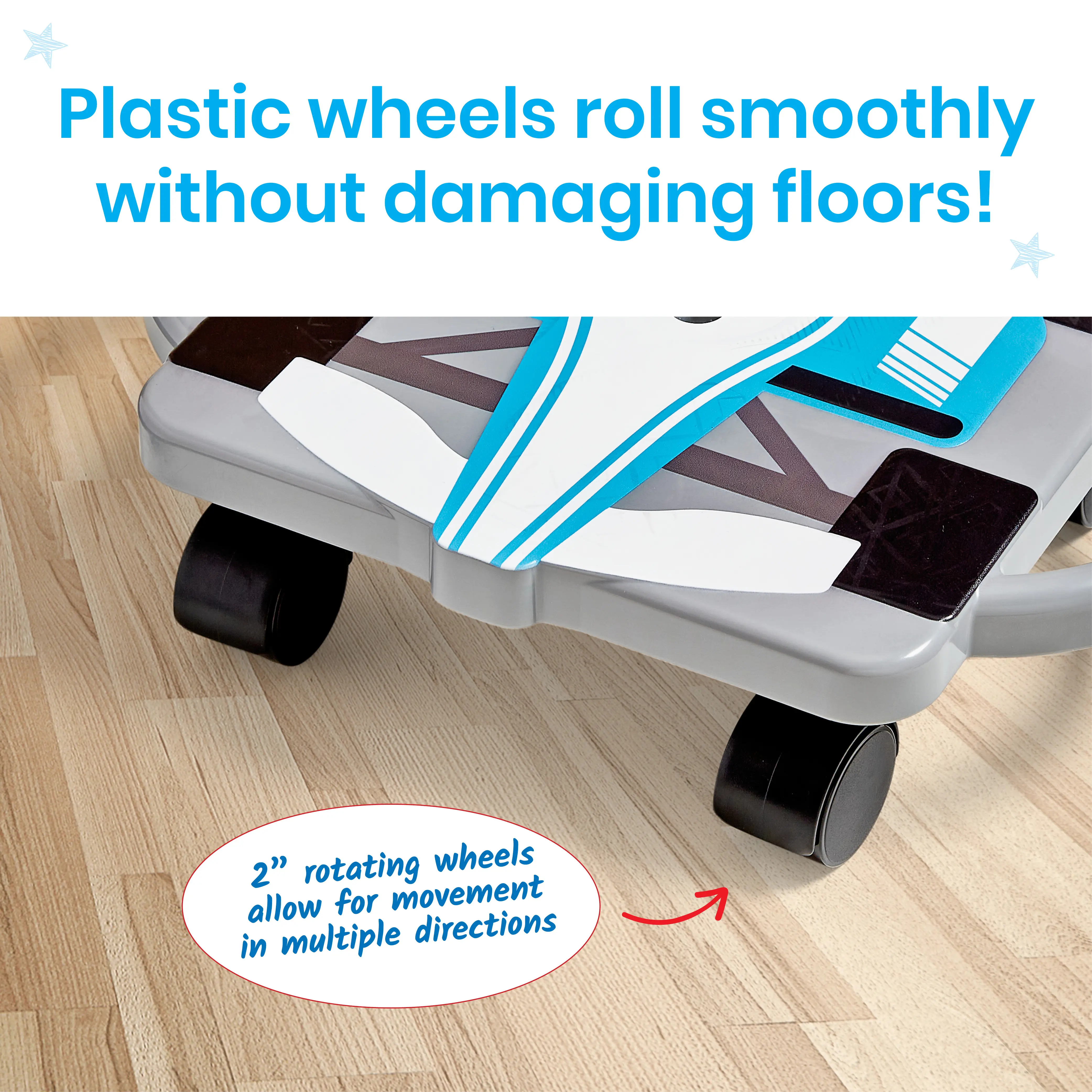 ·SITTING SCOOTER: The plastic durable design is easy-to-clean and can be used on any hard floor surface.