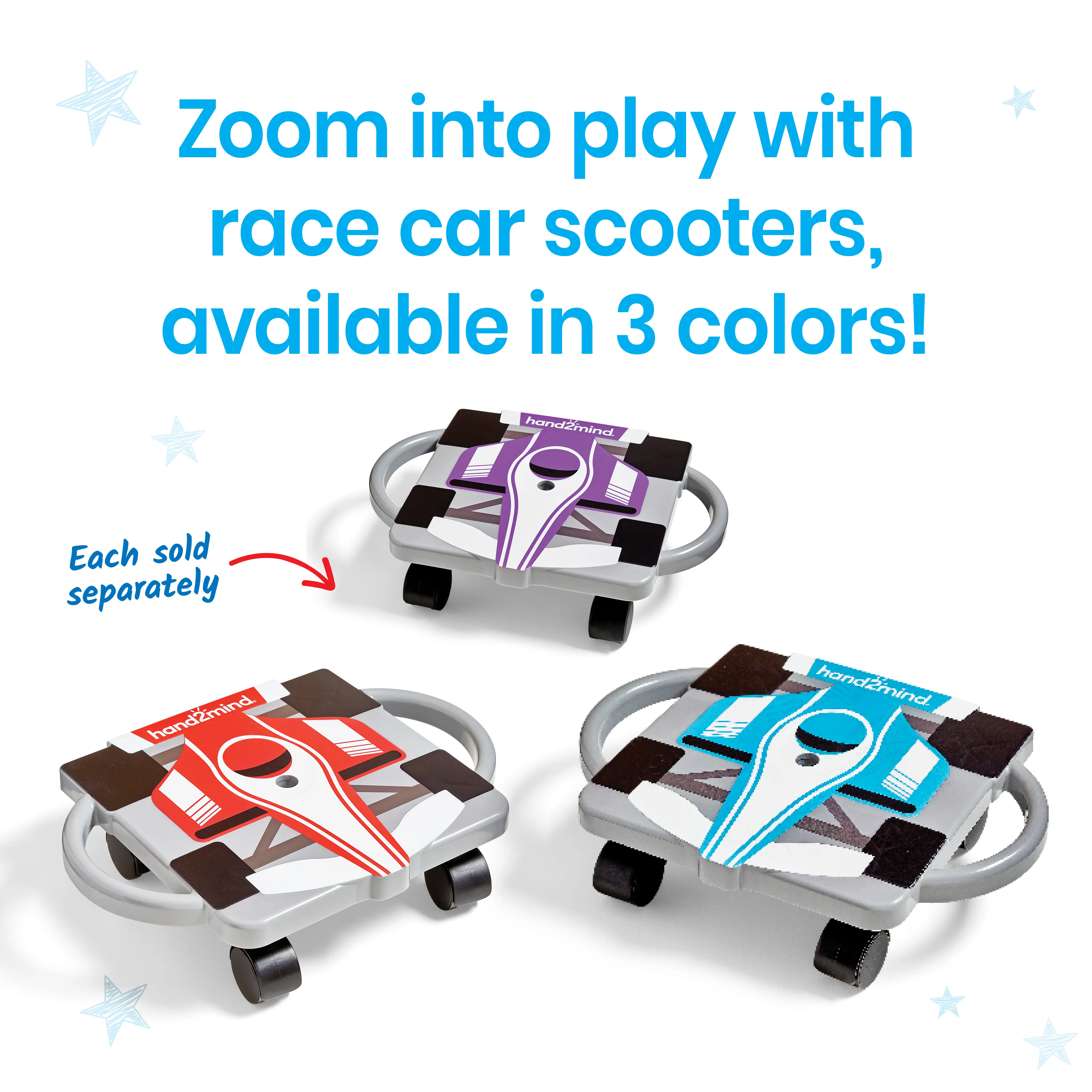·PE EQUIPMENT FOR ELEMENTARY SCHOOL: This race car-themed scooter is available in 3 colors (each sold separately)- blue, purple, and red. This listing includes 1 Blue Speedway Racer Scooter Board.