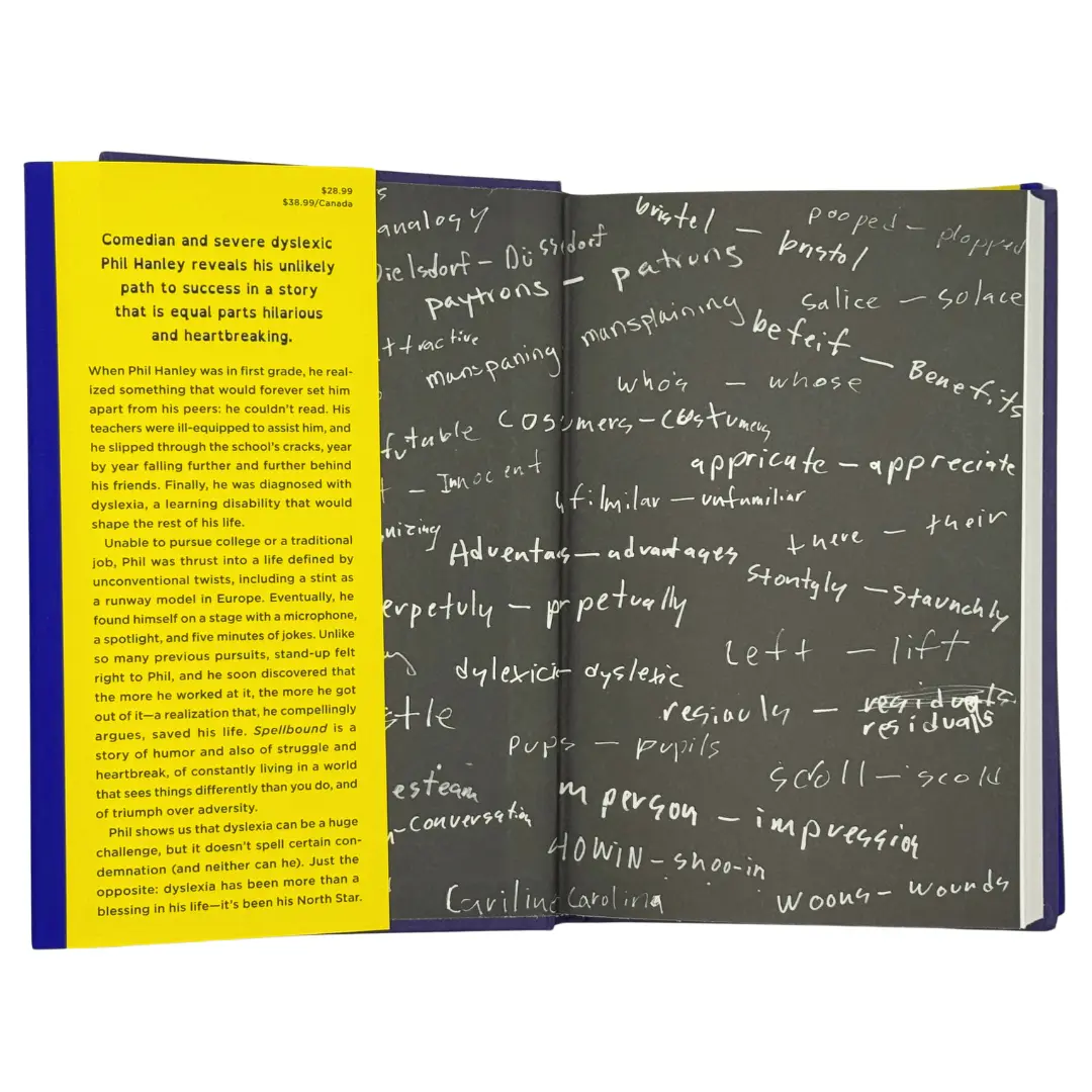 Inside the book, you’ll find Phil’s candid reflections on how dyslexia shaped his life, from unexpected detours like runway modeling in Europe to becoming a stand-up comedian who uses laughter as his superpower. Endorsed by Amy Schumer and praised for its authenticity, *Spellbound* challenges misconceptions and celebrates the strengths hidden within dyslexia.