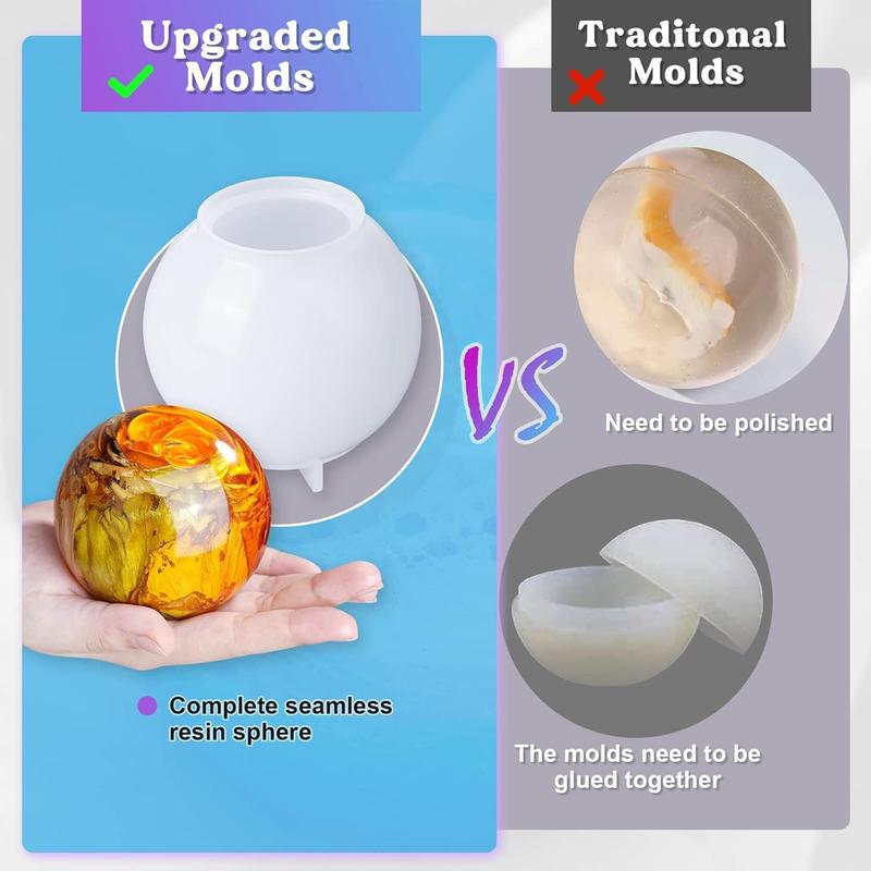 ·【Upgrade One-Piece Silicone Sphere Molds】:Compared to other 2-part resin sphere molds, LET'S RESIN upgrade one-piece sphere molds help you easily obtain a complete ball shape with no seam in the middle part; taping, sanding & polishing is no longer needed. And the base with support design is able to prevent deformation during the casting resin process.