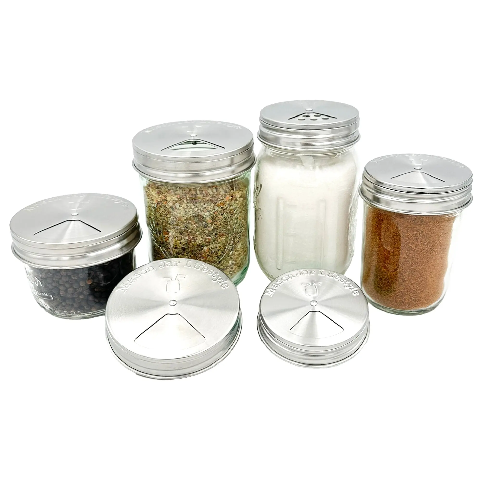 Excellent lids for spices, salt, pepper etc. Pours the spice extremely well depending on the opening you use.