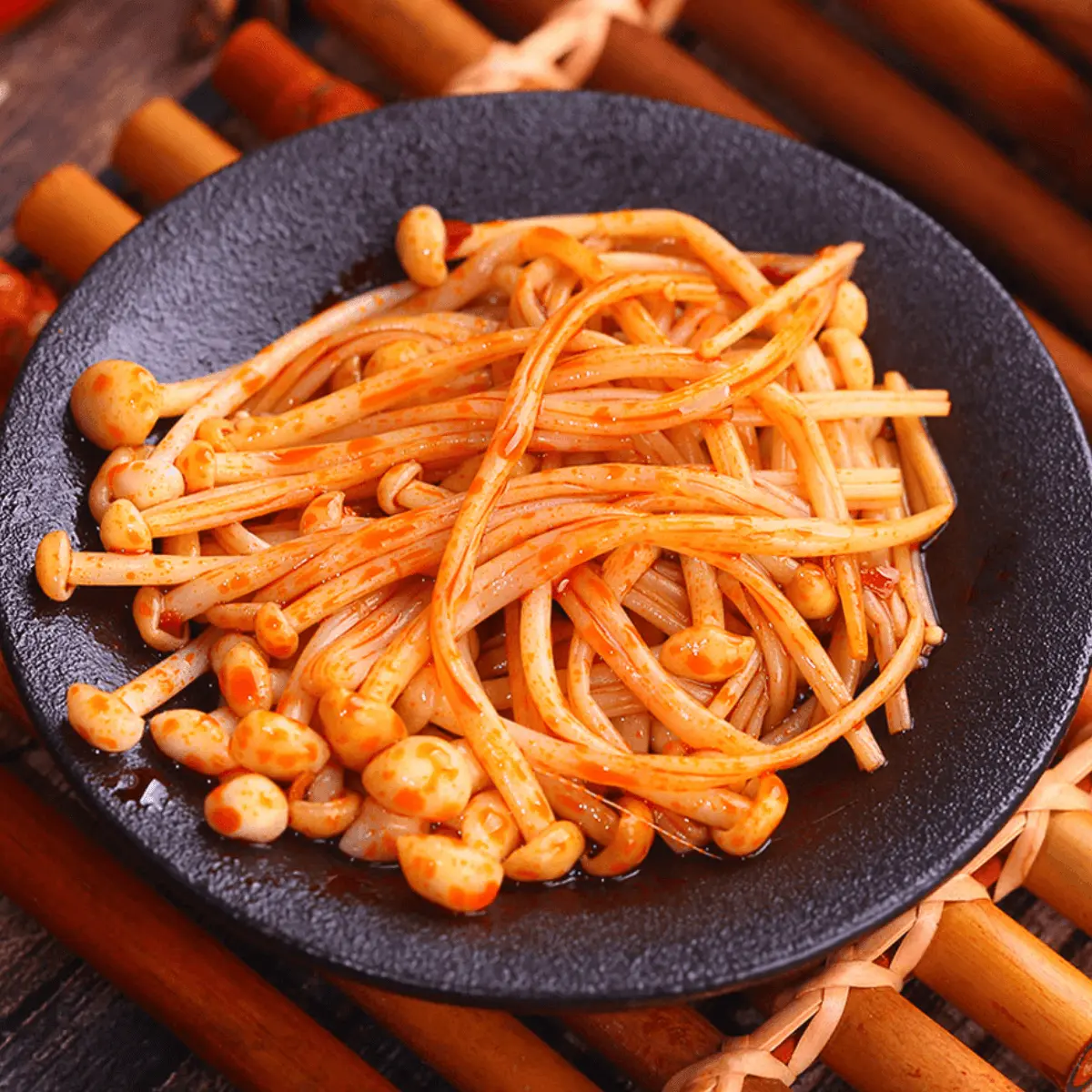 Β·Secretly seasoned red oil envelops fresh, fragrant enoki mushrooms, with a vibrant red color and a rich, satisfying flavor.