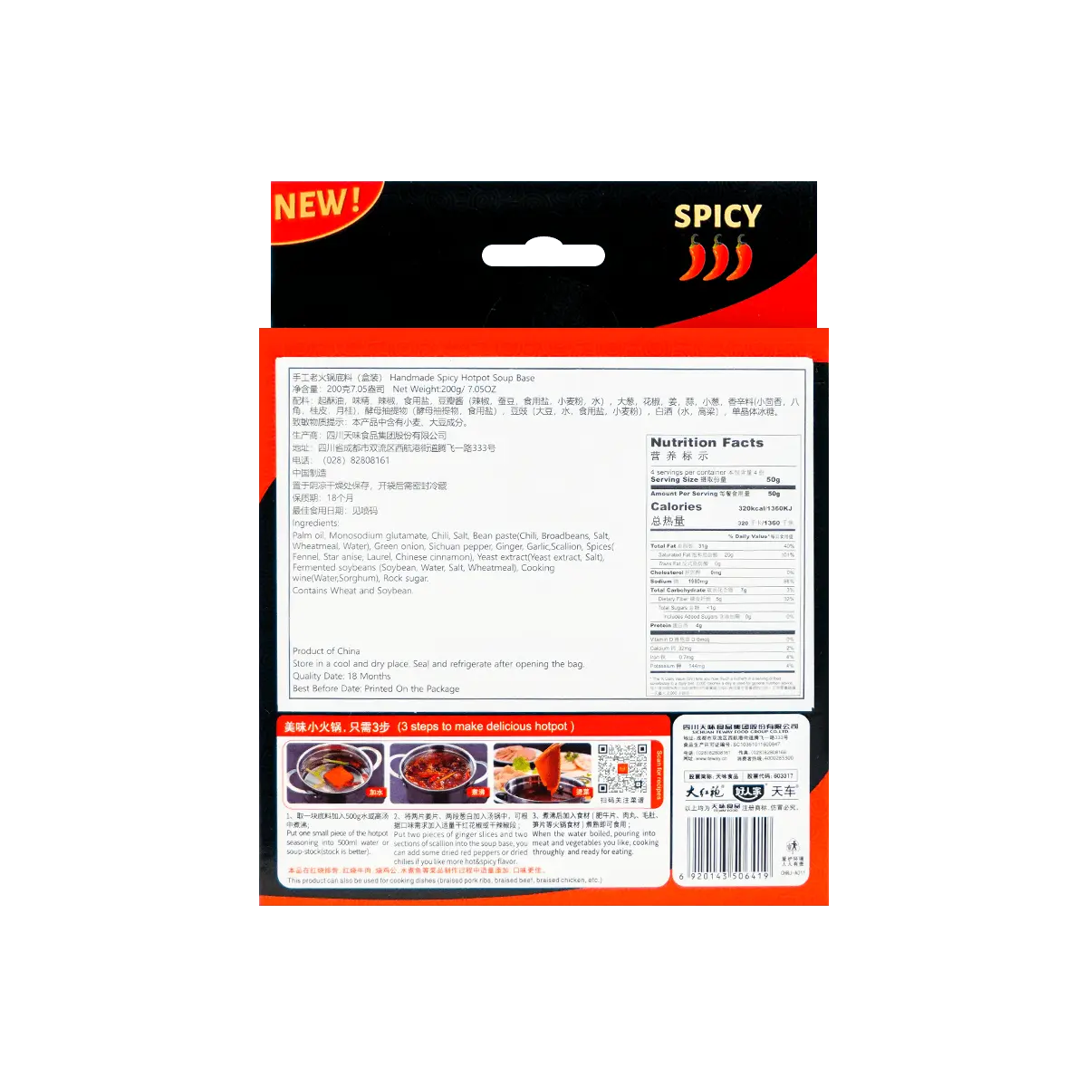 This premium 200g soup base is packed with rich, bold flavors that will transform your hotpot experience. Crafted with care using traditional recipes and high-quality ingredients, it's the perfect foundation for a memorable meal.