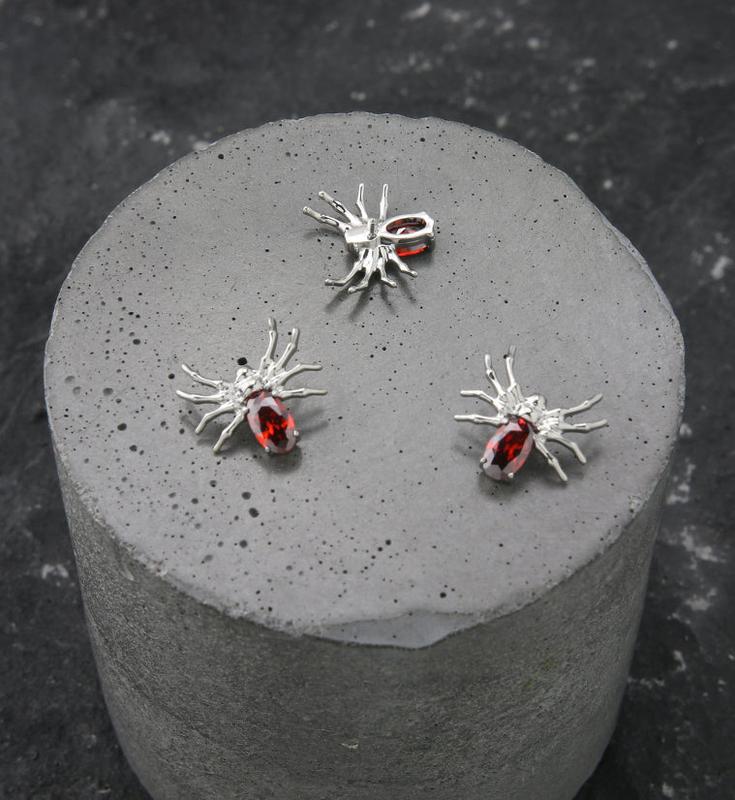 Cool internally threaded top piece that has a spider design with a garnet red cz gem. Made from ASTM F-136 titanium. Measures about 11mm x 10mm. Size: 16G. M0.9 threading. Sold individually (top piece only).