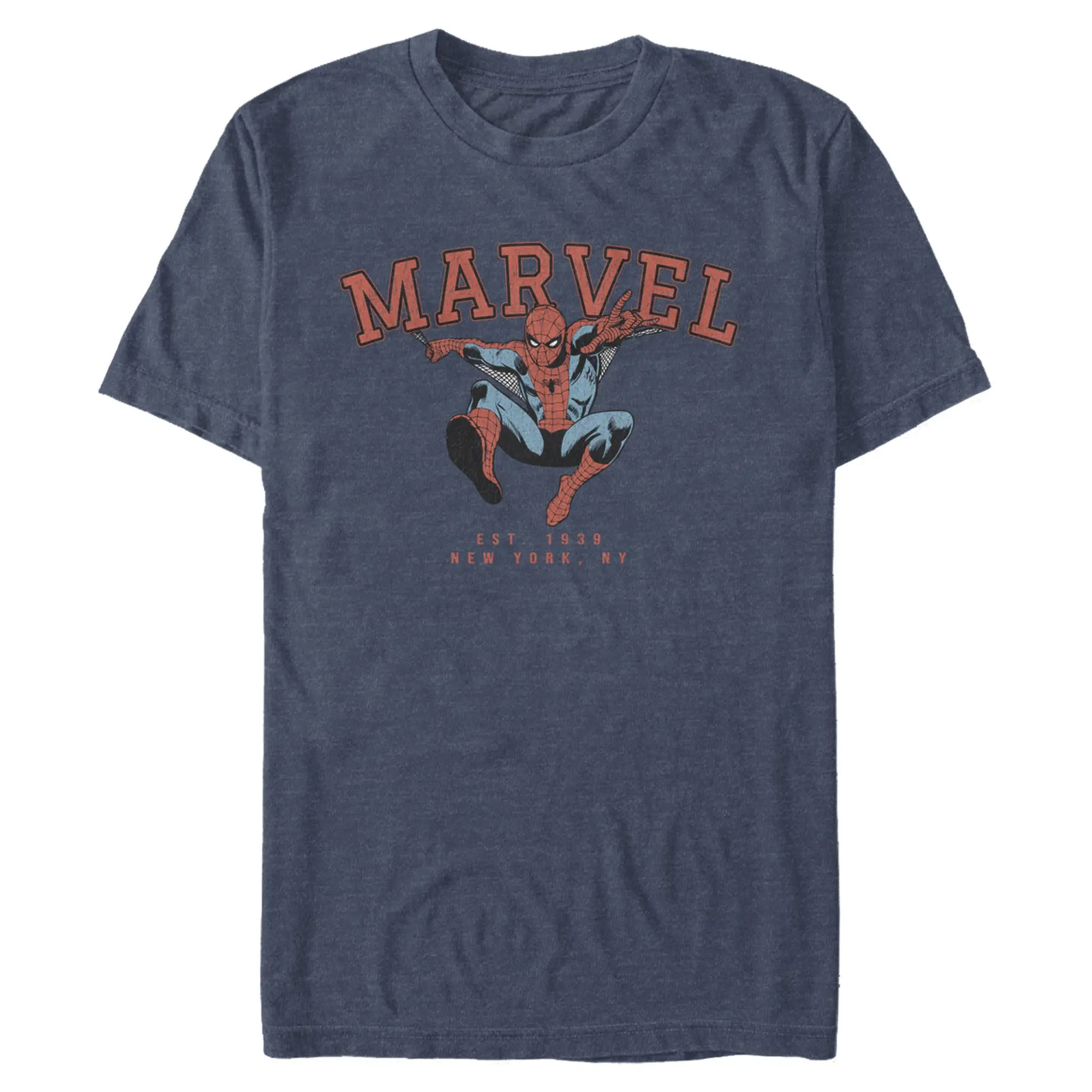 Swing into style with this officially licensed Marvel Spider-Man Graphic T-Shirt, featuring the web-slinging wonder in all his classic comic book glory! With bold, vintage-inspired artwork, Spidey leaps off the fabric, mid-swing, as if he's about to web up your wardrobe. The iconic Marvel logo looms above in striking red, while "EST. 1939 New York, NY" pays homage to the legendary origins of the Marvel Universe. Perfect for true believers, nostalgic fans, and anyone who appreciates timeless superhero style!