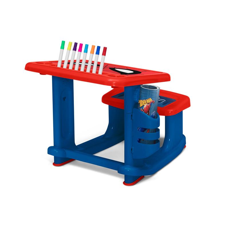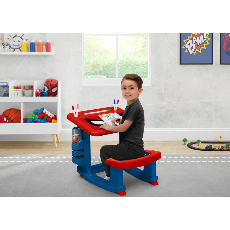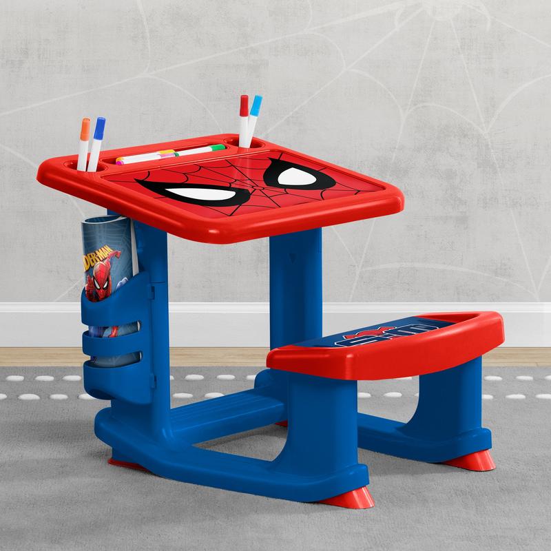 Web-out with the exciting Spider-Man Draw and Play Desk by Delta Children! A colorful spot to paint or draw, this sturdy art desk with bold Spidey graphics, an included 10-pack of markers and 4 coloring pages helps inspire creative play. Tons of storage space for the included markers and coloring pages makes tidying up easy. The desk’s built-in bench seat and footrest ensure your little one stays comfy while they play. Recommended for ages 2 years and up.