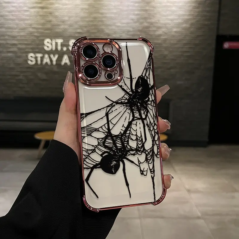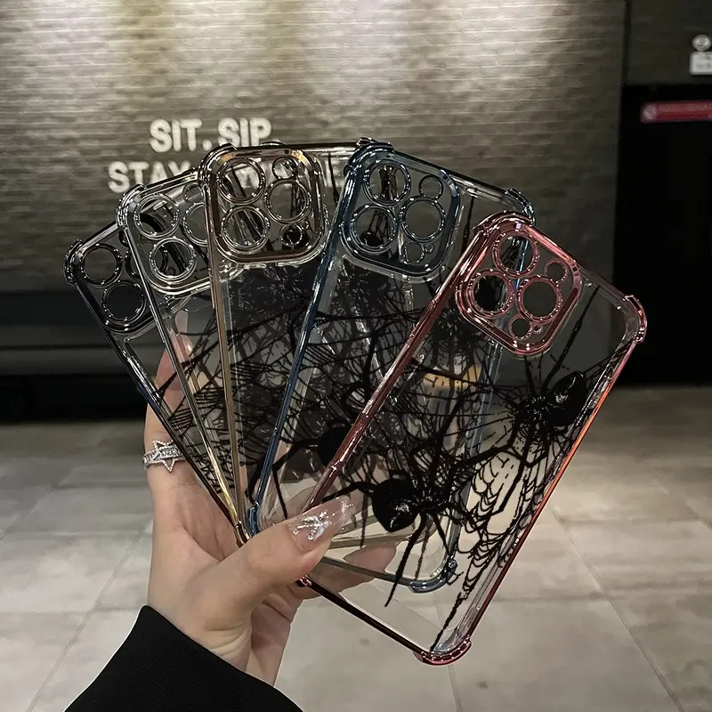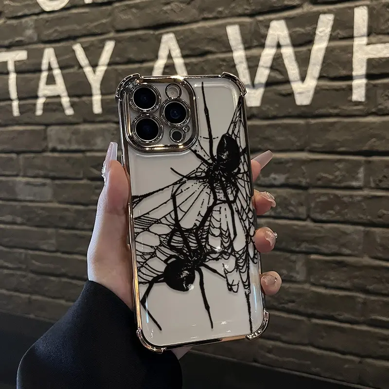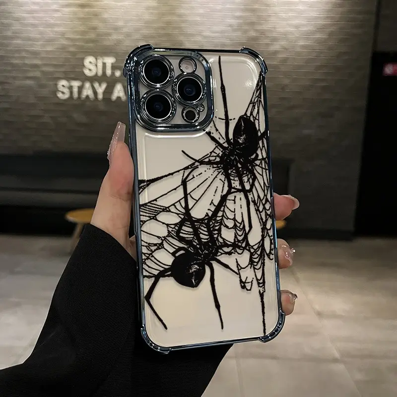 Spider Pattern Four-corner drop-proof TPU phone case for iPhone 16 15 14 Pro Max 13 12 11 XR XS Plus shockproof full camera protection durable slim silicone case mobile phone case