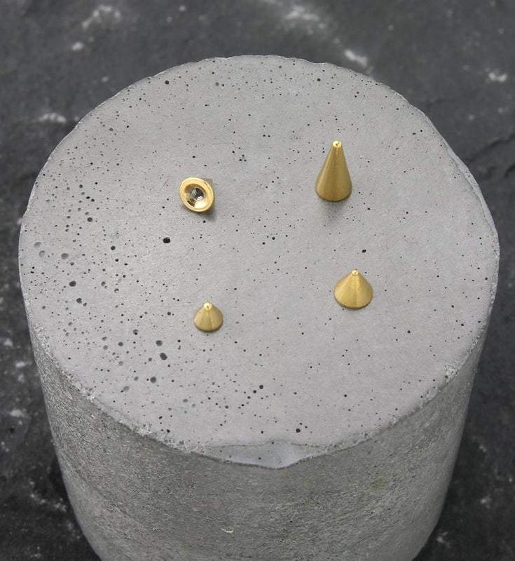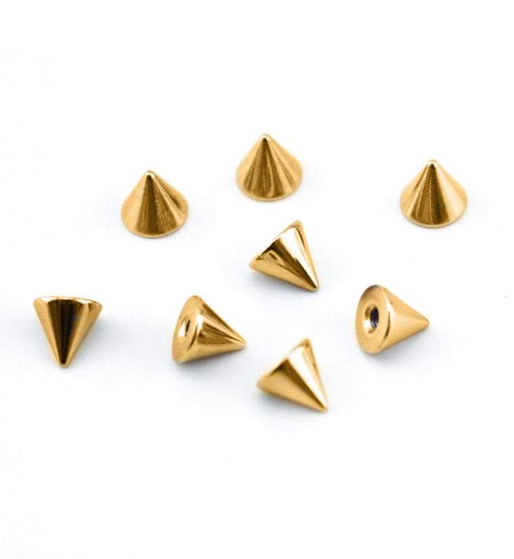 Cool replacement tops for your externally threaded jewelry. These are in the shapes of spikes. They come in sizes 3mm or 4mm with 16G and 14G threaded holes. Threaded for externally threaded posts. Made from gold pvd on 316L stainless steel. Sold individually (1pc).