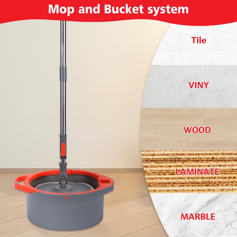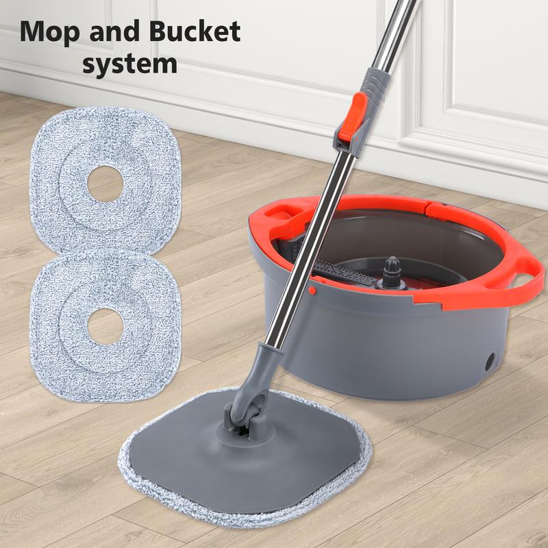 [2025 Upgraded] Spin Mop and Bucket System Set, Dirty & Clean Water Separation System, Adjustable 360° Rotating Mop-Head With Bucket & Mop Pad