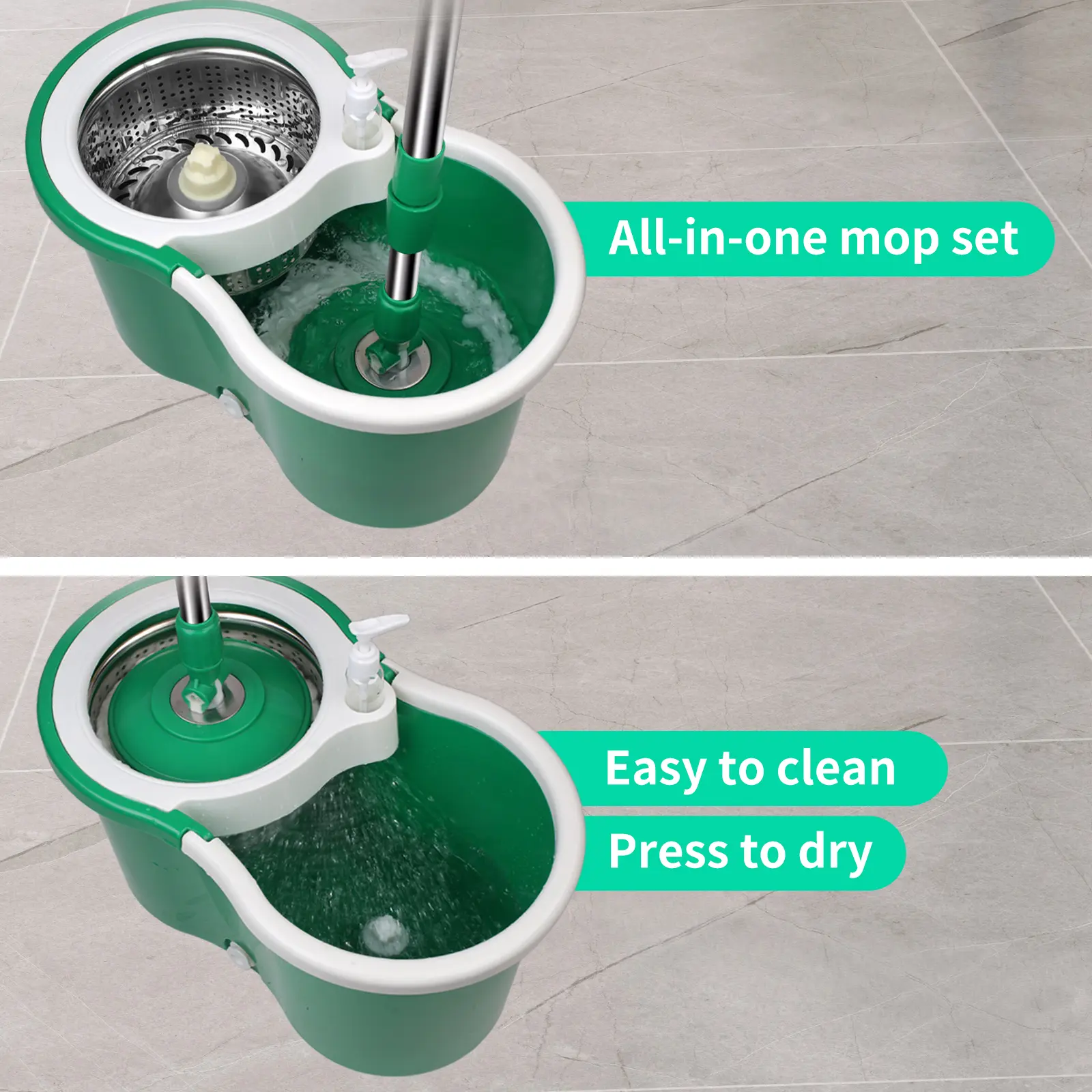 No sirve se sale la parte de abajo cuando lo saco en el agua se queda la parte del trapeador y cuando lo pongo se queda flojo