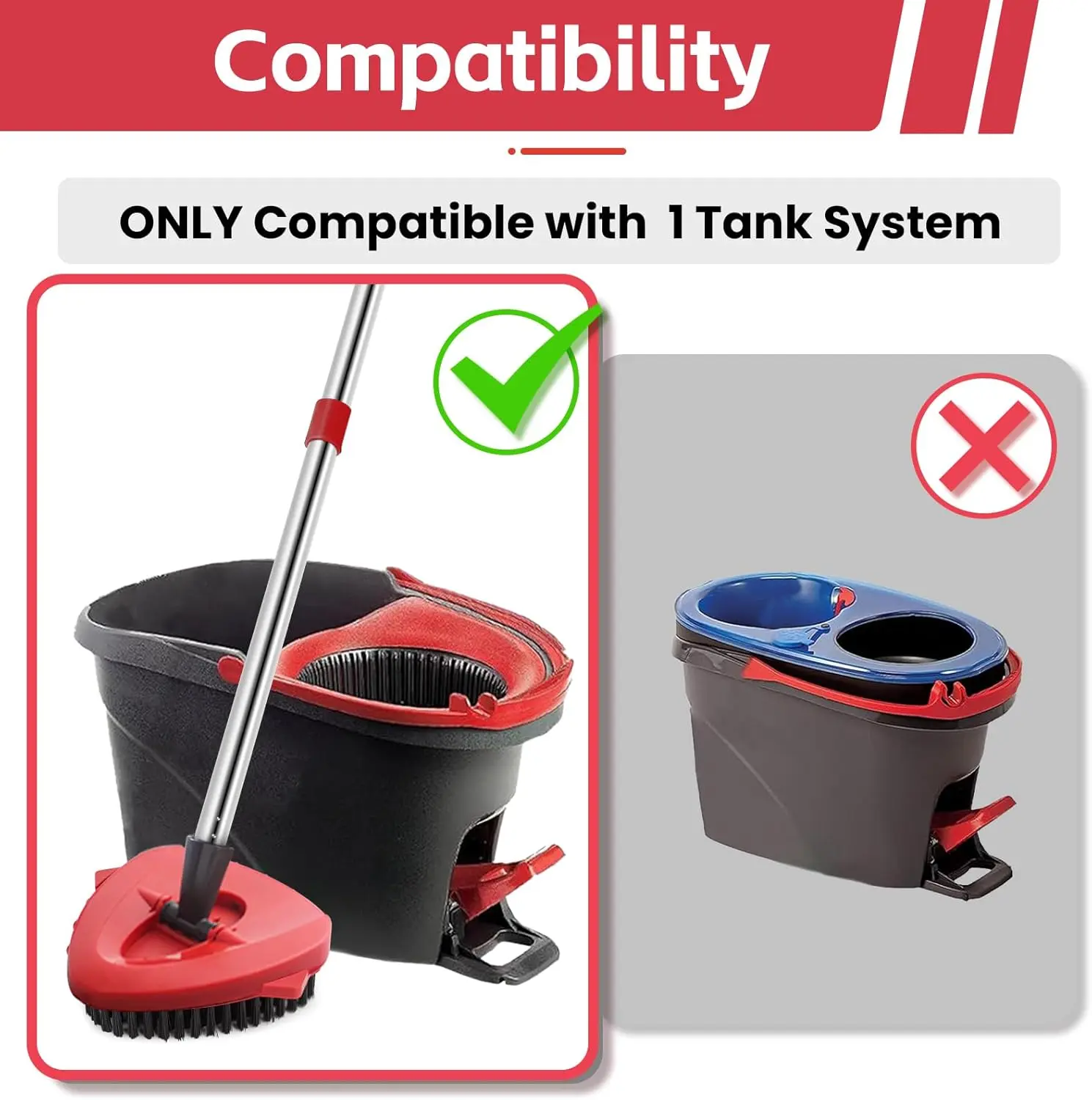 【Compatiblity】- This spin mop replace head, mop base and mop handle sets is for O cedar EasyWring Spin Mop. NOTE: 2/5pcs mop heads refills and base only compatible with 1-Tank system NOT for 2 Tank RinseClean system. But the Individual Mop Handle is Universal fit for ocedar spin mop system.