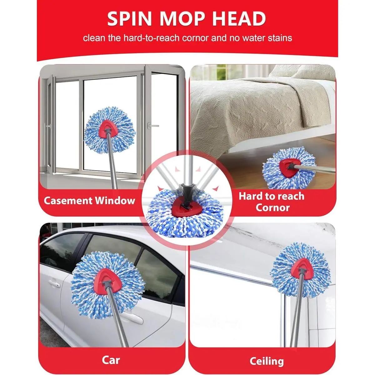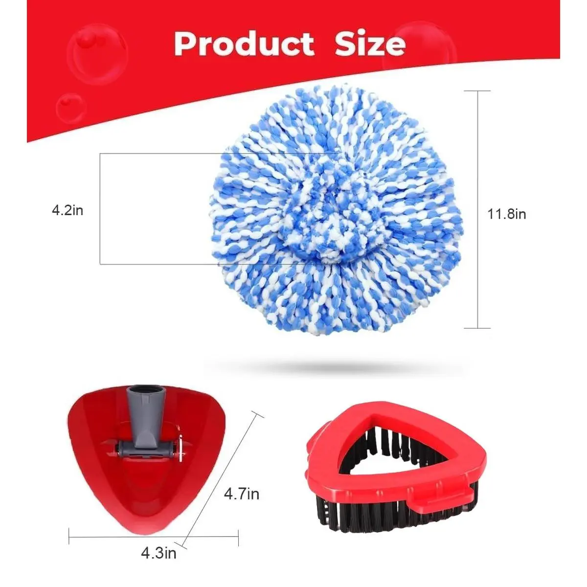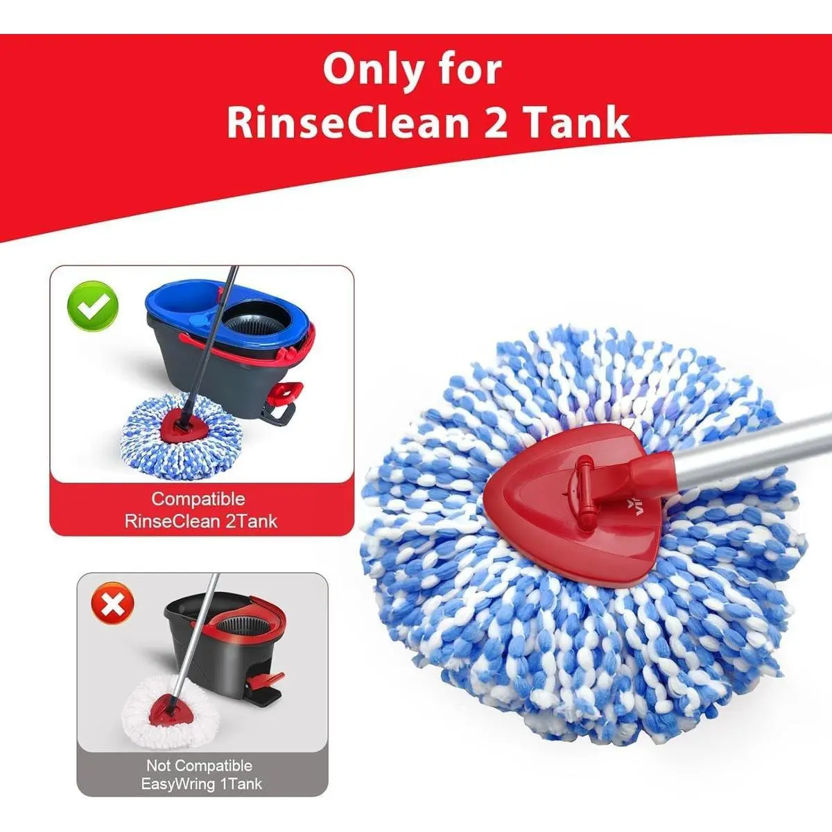 ONLY for 2-TANK SYSTEM) Spin Mop Replace Head Compatible with O-Cedar RinseClean 2 Tank, Mop Replacement Head Base, 3 Microfiber Head Refills+1 Brush(Hide inside)+1 Base Combo Set (Blue)