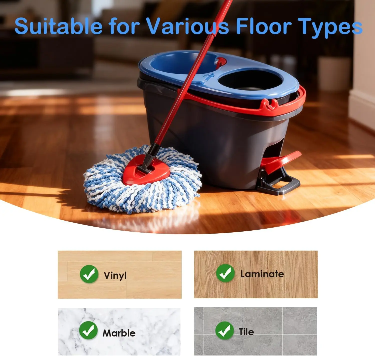Multi Purpose - The ultra-fine fiber rotating mop pen core utilizes the power of ultra-fine fibers to provide deep cleaning for your floor. Suitable for both dry and wet use. Suitable for almost floors with smooth surfaces, such as wooden floors, ceramic tiles, reinforced floors, marble floors, and other sealed hard floors. And you also this mop replacement kit to wash the , which is very user-friendly.