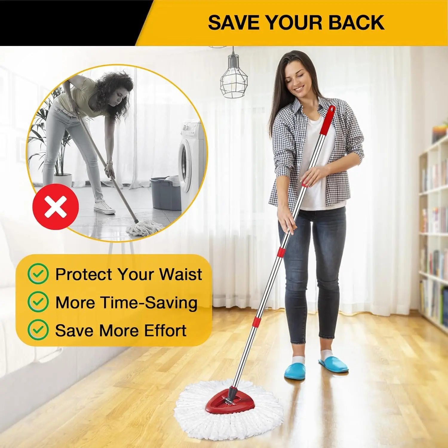 Upgraded Durable Mop Stick: This spin mop handle is crafted from lightweight stainless steel material, offering durability and longevity. Each handle is equipped with a plastic protective cover for easy handling.