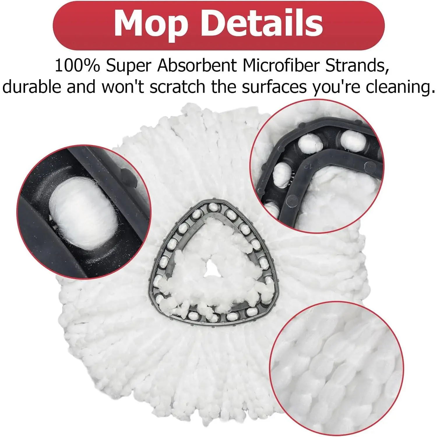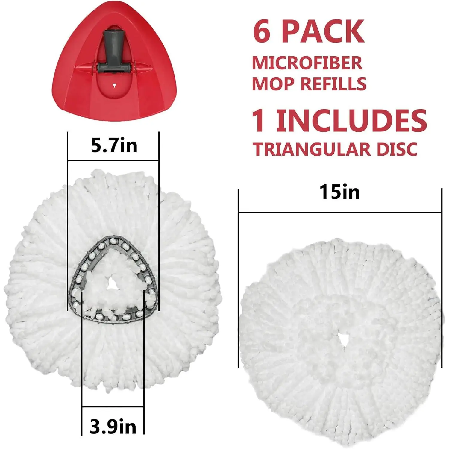 Spin Mop Replacement Head - 6 Pack EasyWring Mop Refills with Base Compatible with O-Cedar Triangle Spin Mop, Microfiber Mop Replace Head Easy Cleaning Floor Head Mop for Floor Cleaning mop floor