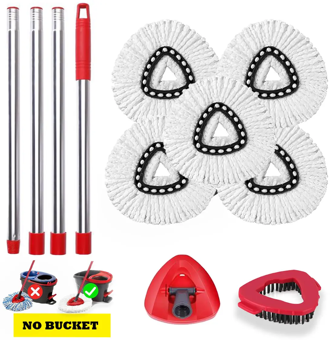 ·【Easy to Install】: Replacement Head/Brush and Base snap together, very solid, just remove the dirty mop head and snap the new spin mop refill into the triangular mop base, after you hear a "click", it means the replacement is successful.