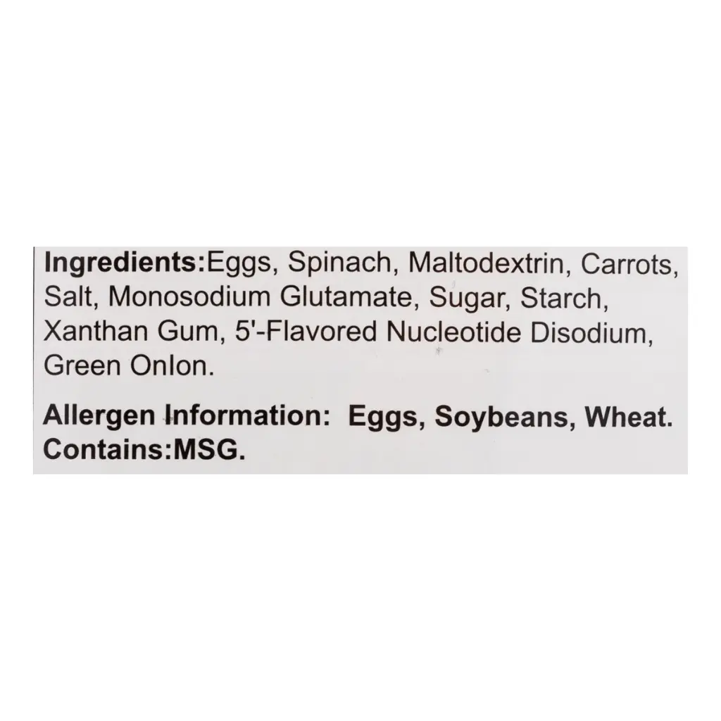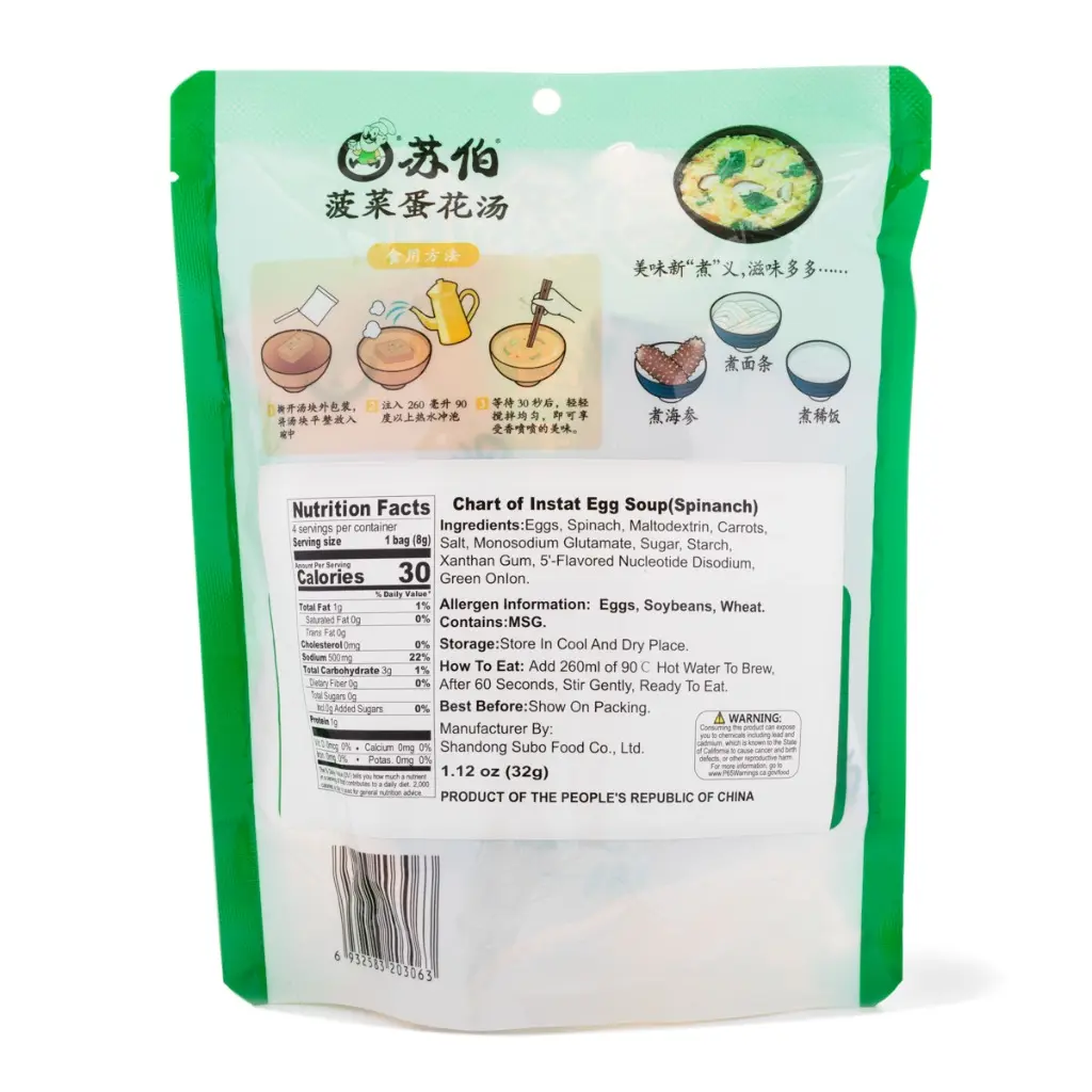 Subo Chart of Instant Egg Soup Spinanch