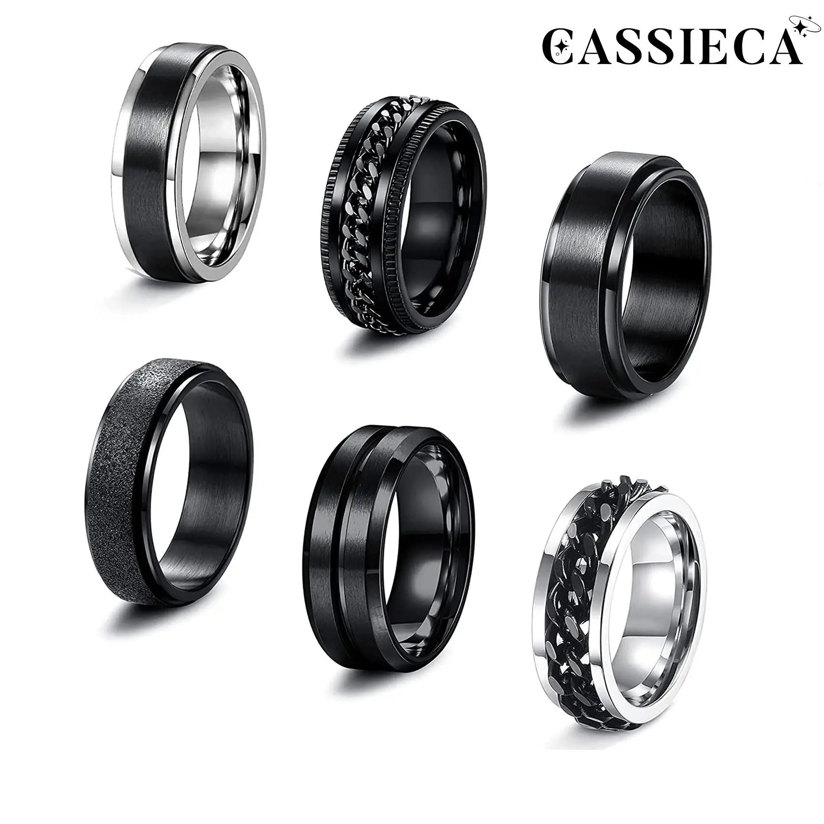 Cassieca 6PCS Stainless Steel Spinner Rings