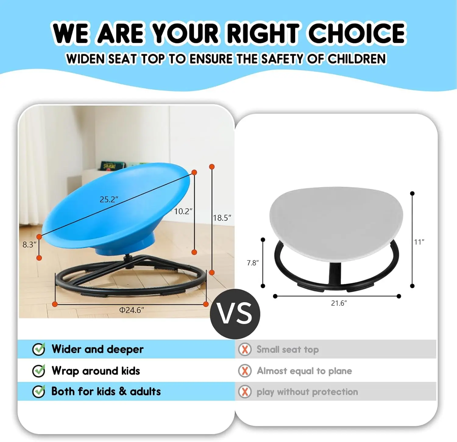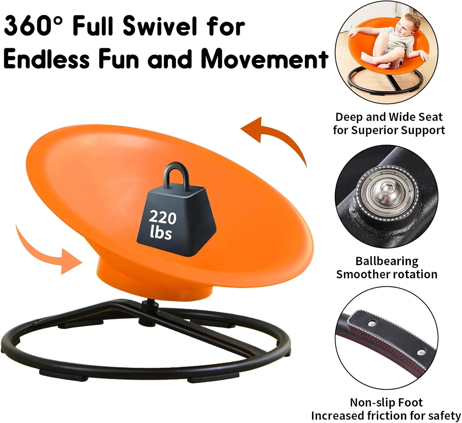 This spinning chair is a HIT in my house! The kids drag it outside, spin until they scream-laugh, and fight over turns like it’s the last ride at Disneyland. Super sturdy, super fun—my only regret is not buying more than one.