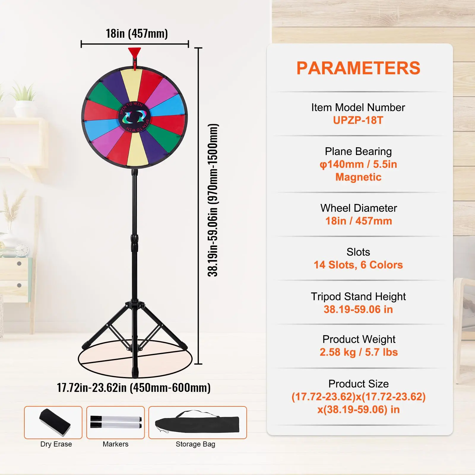 • Fun for Every Event: The dry erase wheel is perfect for holiday activities, trade shows, carnivals, annual meetings, parties, company events, restaurants, fitness clubs, etc. It is also great for kids to play math games and help develop intelligence.