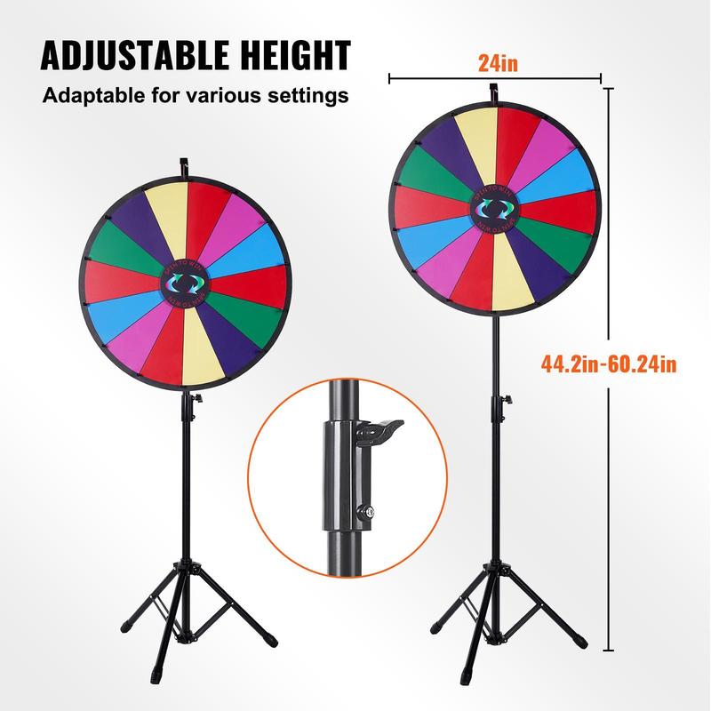 5. VEVOR 24 inch Spinning Prize Wheel, 14 Slots Spinning Wheel with Height Adjustable Stand, Roulette Wheel with a Dry Erase, and a Storage Bag, Win Fortune Spin Games in Party Pub Trade Show Carnival