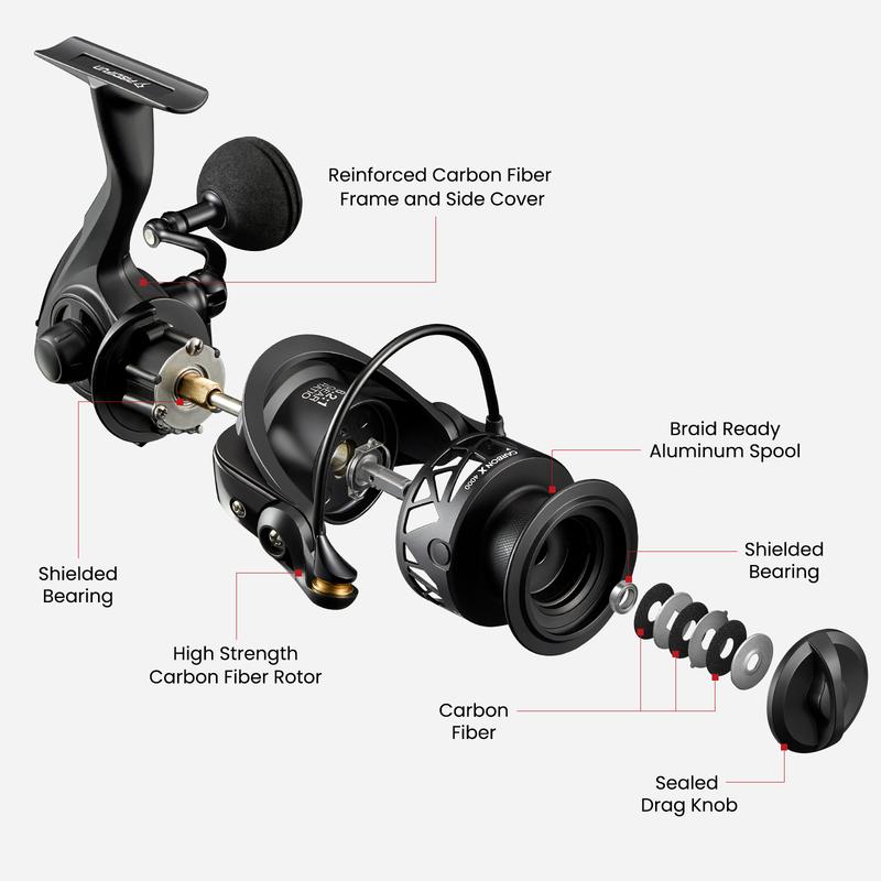 ·Unique and Innovative – The Carbon X is loaded with incredible features like our reinforced anti corrosion stainless steel main shaft and Zinc Alloy drive gear, direct drive screw-in aluminum handle, hollow nest shaped spool, smooth positive click drag, and high density EVA knob. These features are typically found in reels in a much higher price range, but we are making it affordable for everyone.
