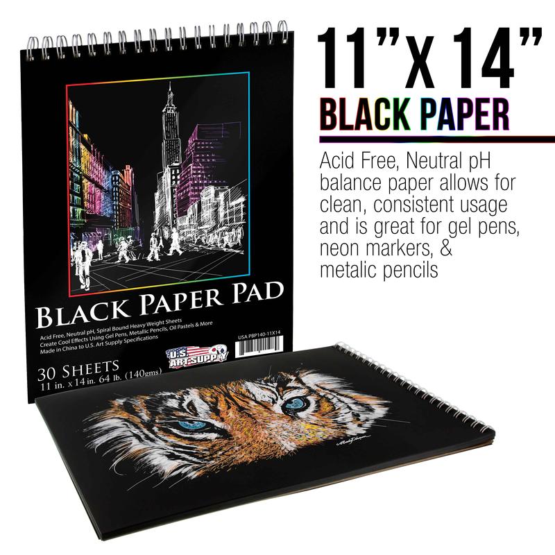 ·2 Pack of 11" x 14" Premium Black Heavyweight Paper Sketch Pads. 30 sheets in each pad, 60 sheets total. Artists' quality black sketch and drawing sheets that are ready to make your artwork pop!
