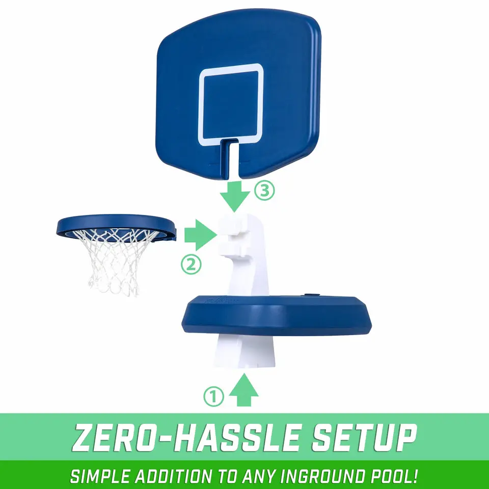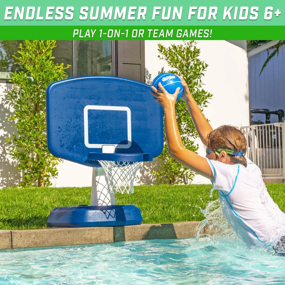 ·SPLASH HOOP CLASSIC: A fun & easy upgrade for any inground pool; Set includes 1 Splash Hoop Classic and 1 water basketball with inflation needle (use with any standard ball or bike pump)