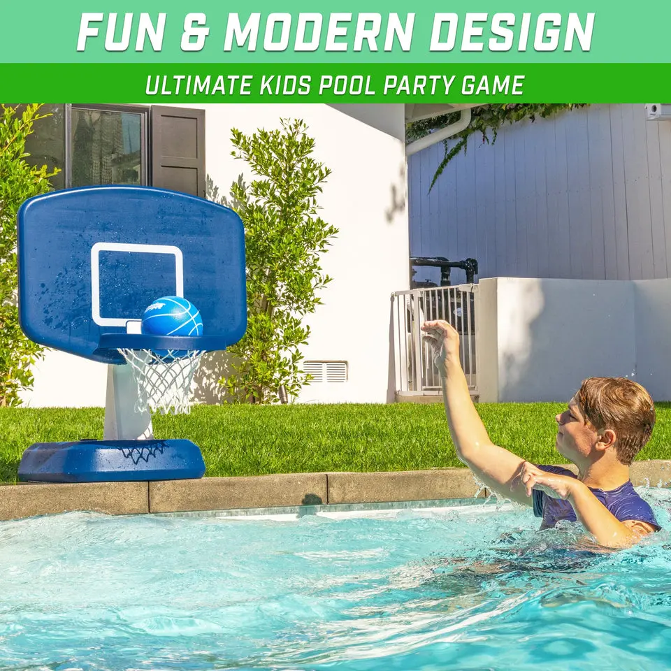 ·POOLSIDE FUN: Take the exciting action of basketball from the court to the pool; Large, robust backboard measures 28 x 20 inches, perfect for kids 6+; Set includes a 6.5 inch inflatable water basketball to shoot hoops