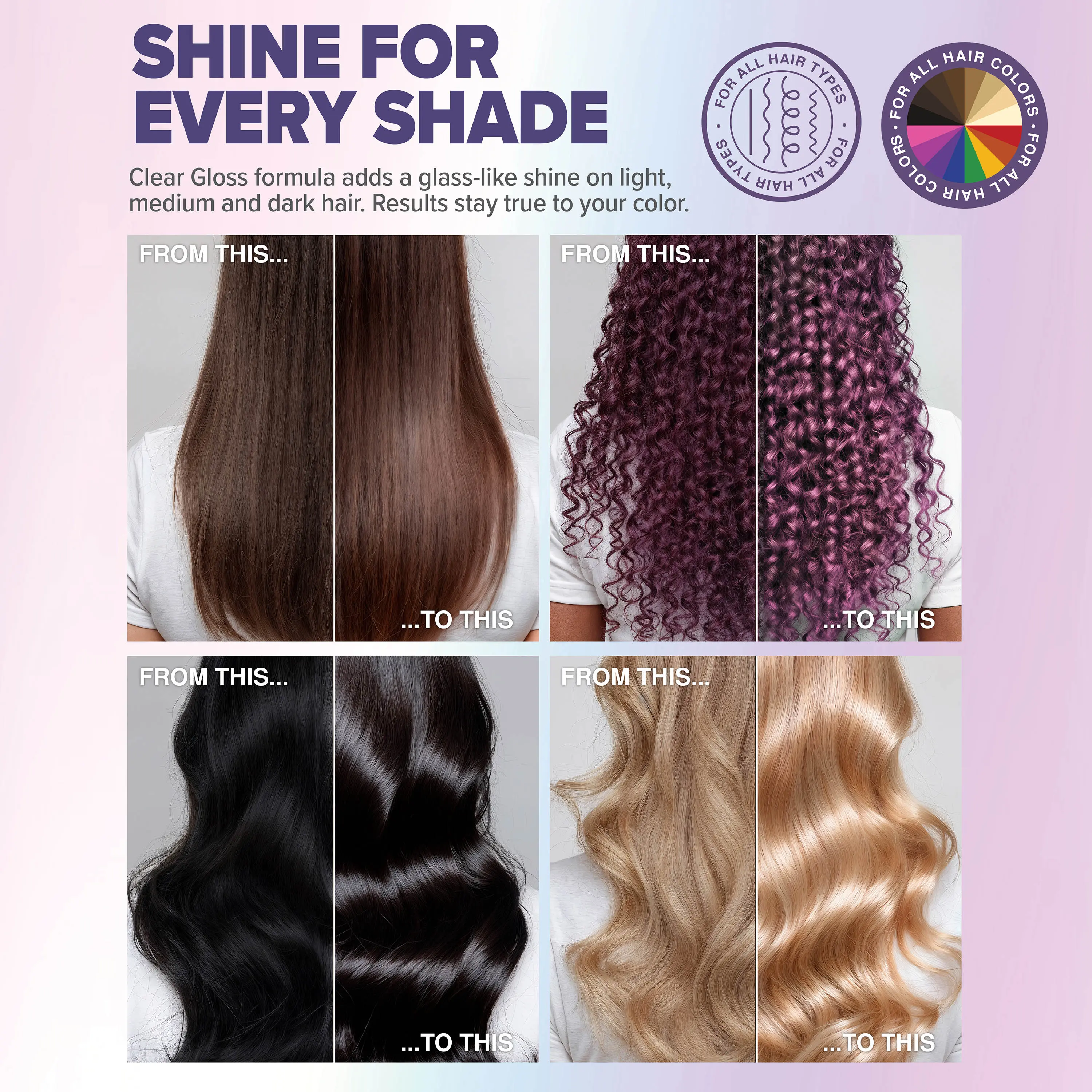 ·Clear gloss treatment for extreme shine and silky softness