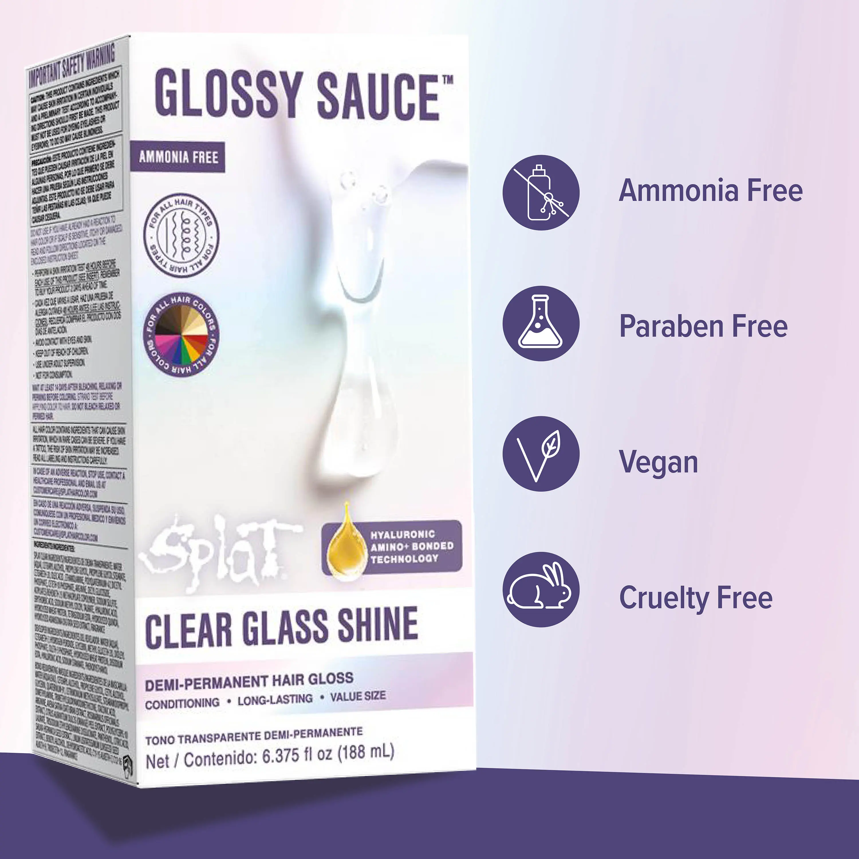 Get salon-level shine at home with Splat Glossy Sauce Demi-Permanent Clear Gloss Hair Color. This no-color, ammonia-free gloss treatment is designed to revive dull hair and deliver a smooth, glass-like finish in just 20 minutes. The drip-free creme formula boosts shine, hydration, and manageability without altering your hair color.