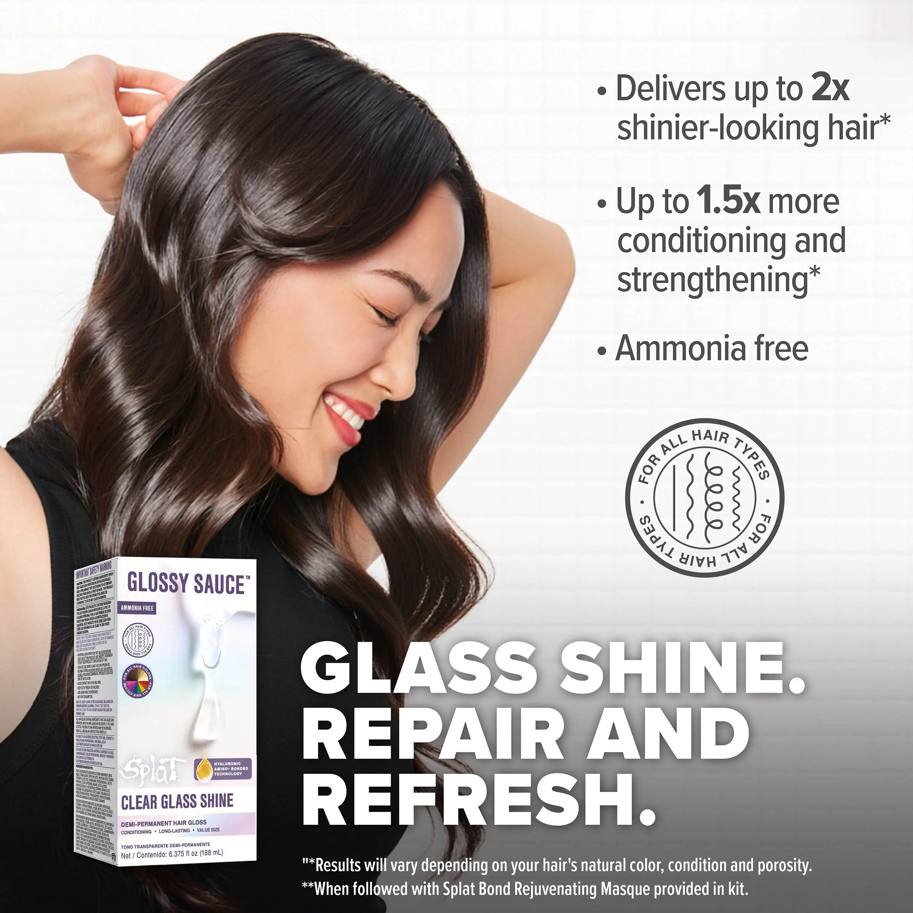 Powered by Hyaluronic Amino+ Bonded Technology, Glossy Sauce helps deeply hydrate, reduce frizz, and fortify hair against breakage while sealing the cuticle for healthier-looking strands. Results last up to 4 weeks, making it an easy, low-commitment glossing solution between color services or on natural hair.