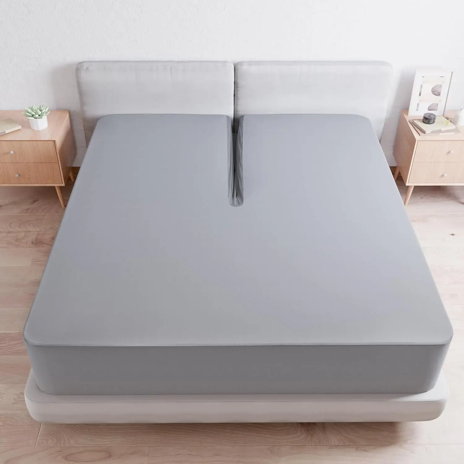 Stretchable: The Split Flex Fitted Sheet only deep pocket have 360° fabric pocket with an elastic band encased at the bottom ensures a tight, secure fit. The split top sheets won’t ride up or move around in middle of the night, staying smooth and snug.