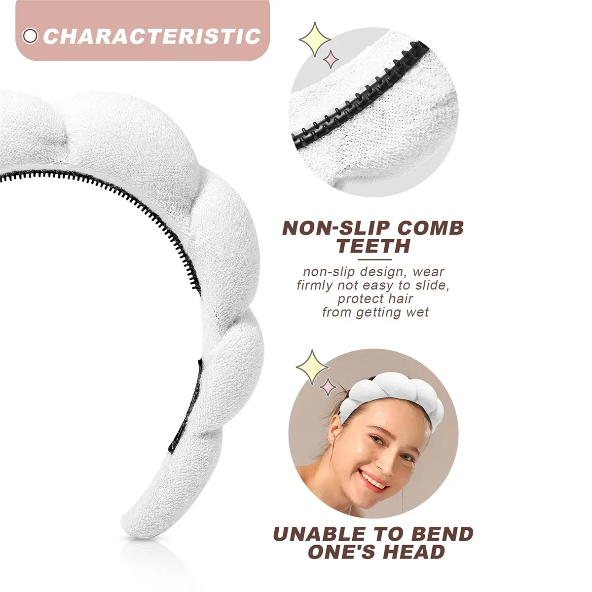 Sponge Headband Set Controls Hair While You Washing Face and Makeup - Sponge spa headband comes with teeth comb without slipping from your head. Then the terry spa headband can control the hair on your forehead and sideburns from getting wet or stained by cosmetics.
